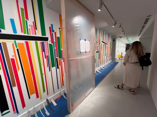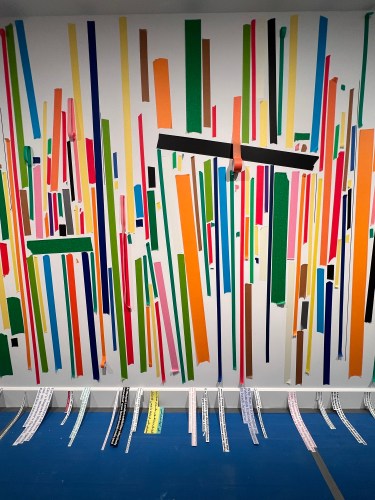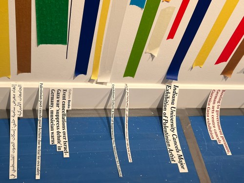 “Commissioned by Mathaf, we (Walid Raad and Pierre Hughebaert) set out to create a mixed media installation for this corridor, assembling headlines and statements by artists, curators, and others working in the arts about the wars in Palestine-phrases we wish were ours, and ones we would never claim. After shipping our materials to Doha, we arrived six weeks ago to find our assigned corridor arranged in an odd way. It quickly became clear that someone, most likely a technician or staff member, simply aiming to be helpful, had organized our materials to make installation easier. We abandoned our plans and decided to leave space as it was. Needless to say, we spent weeks trying to identify the culprits who had freely yet fastidiously laid these “facts on the ground.” But to no avail.”