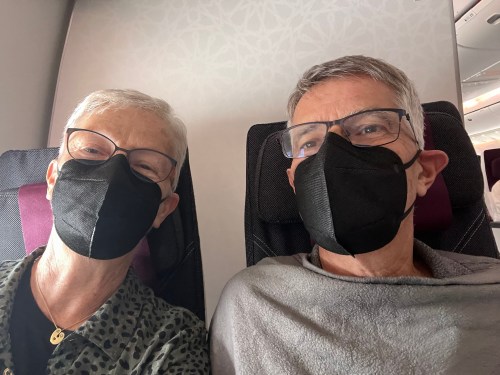 Seems that the days of wearing masks on plane is over. We appear to be the only people wearing masks. While waiting to board our flight to London, the coughing around us sounds to me like an orchestra tuning. Never heard so many people coughing, but no one seems to care, we are keeping masks on and bugs out! We will let you know how that turn out.