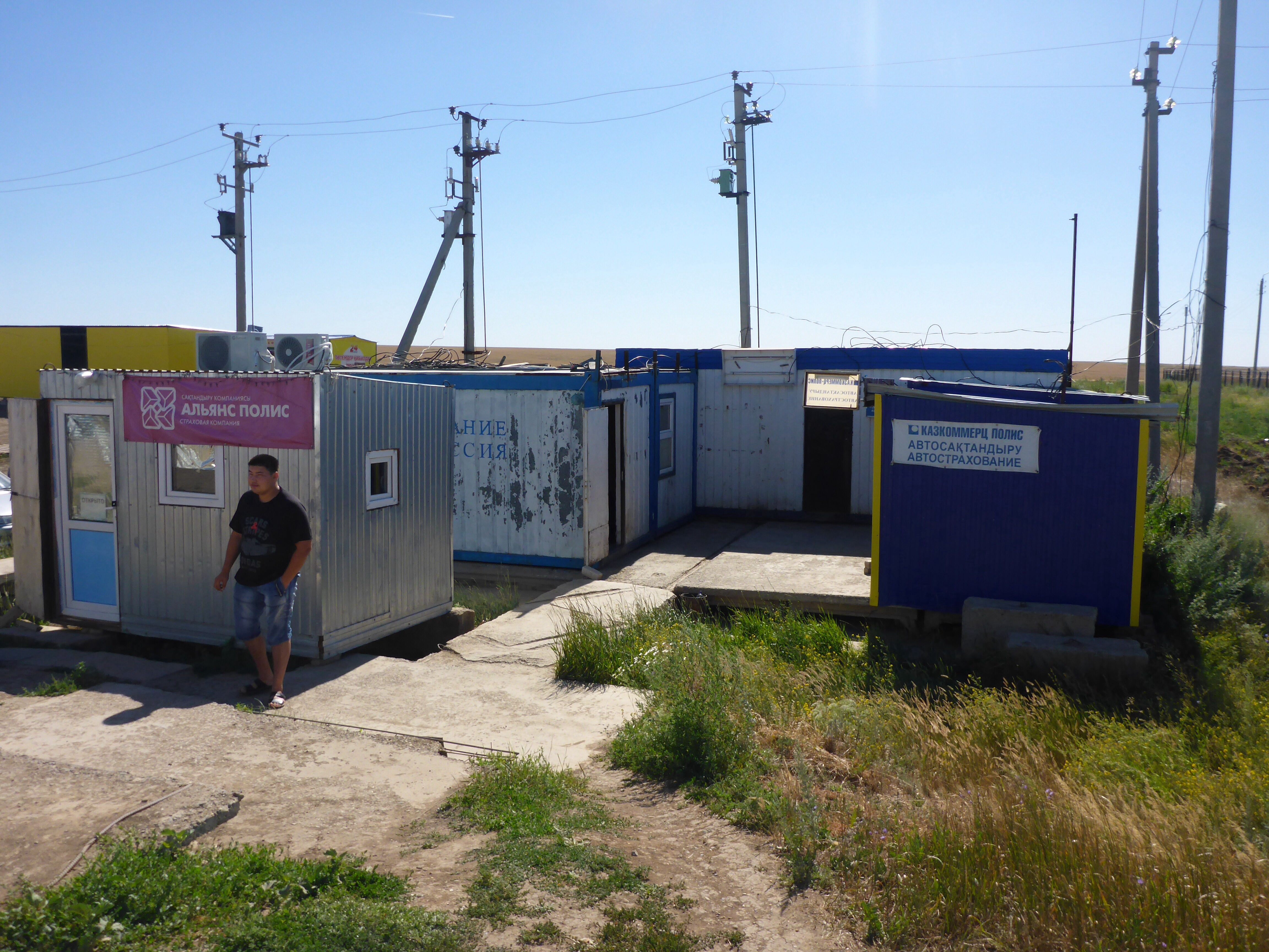 This where you get your Kazakhstan road insurance just after going over the border from Russia, coming from Mashtakov.