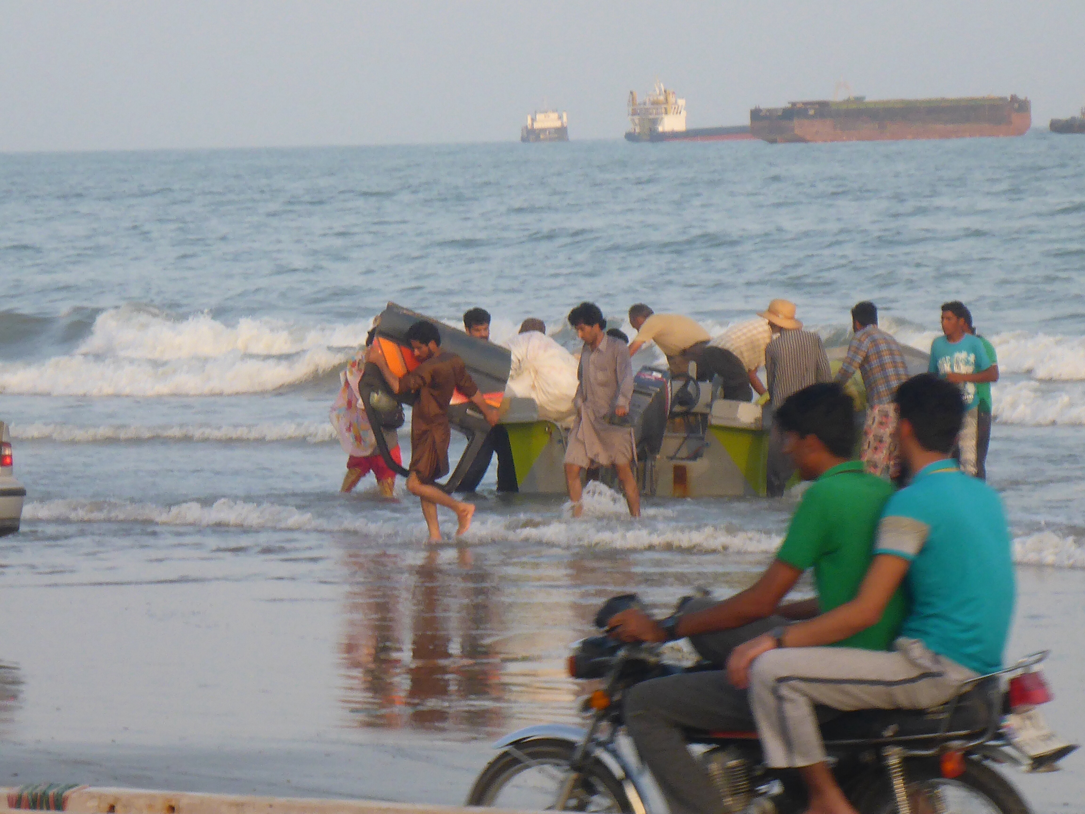 No not exactly. Rather people coming to load up their cars with smuggled goods! All these so called ‘fishing boats’ travel out to sea to collect goods from ships and bring them back to the beach for onward transportation for sale. We saw clothing, car bonnets and doors, people.
