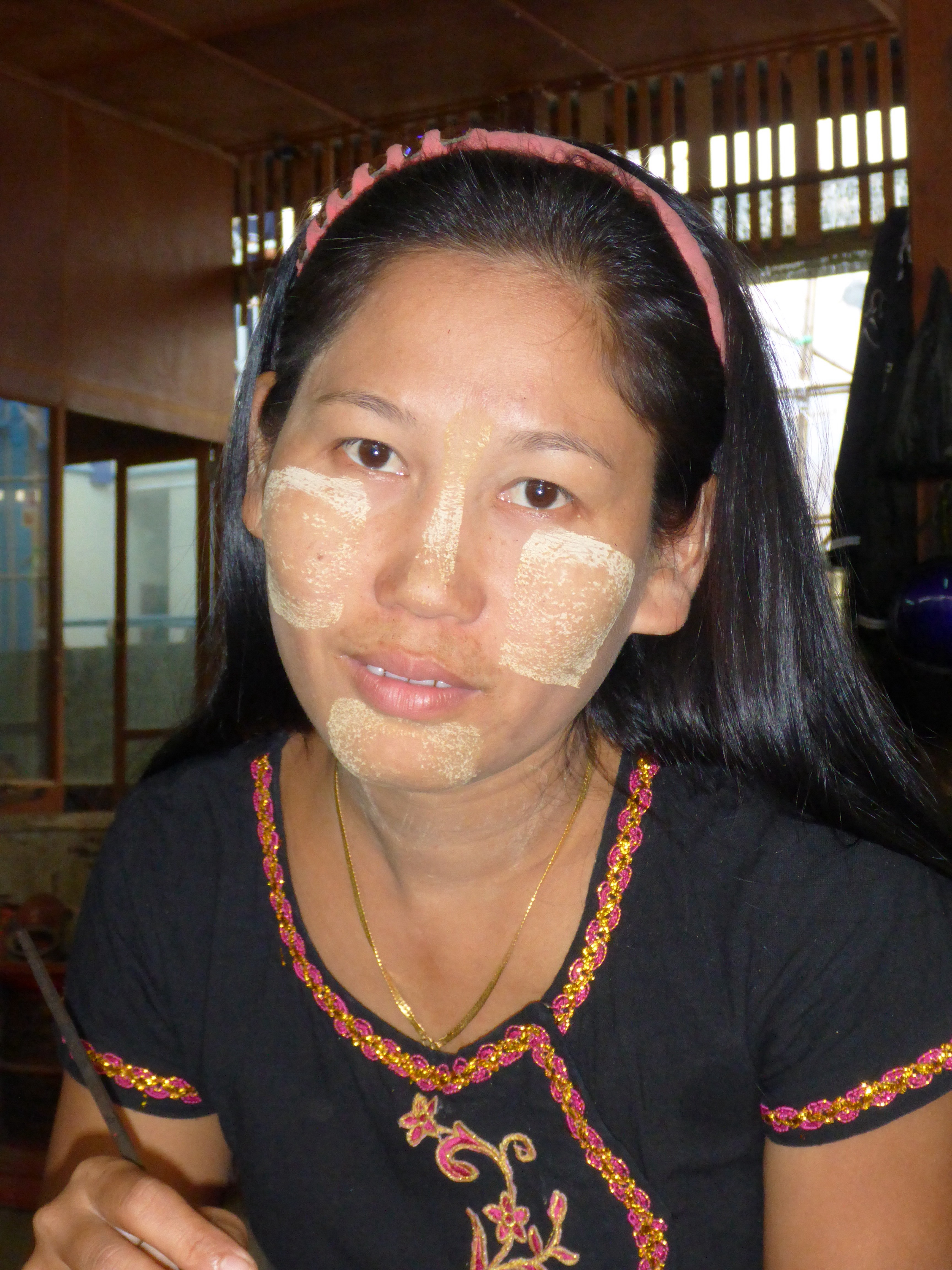 Myanmar lady with thanaka cream for its cosmetic and sunburn protection properties