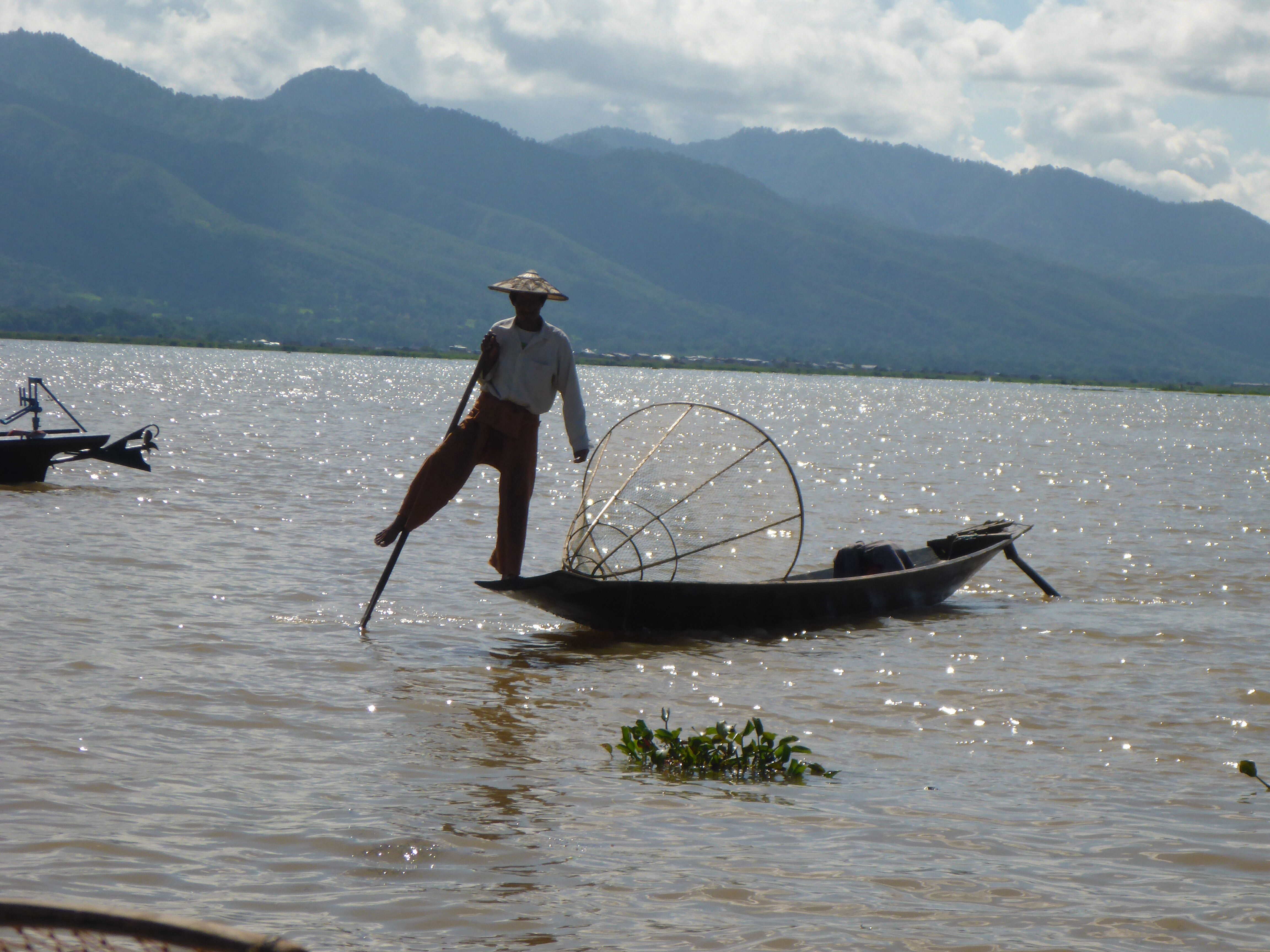 Ingenious one legged rowing used by fishermen on Inle Lake, Myanmar