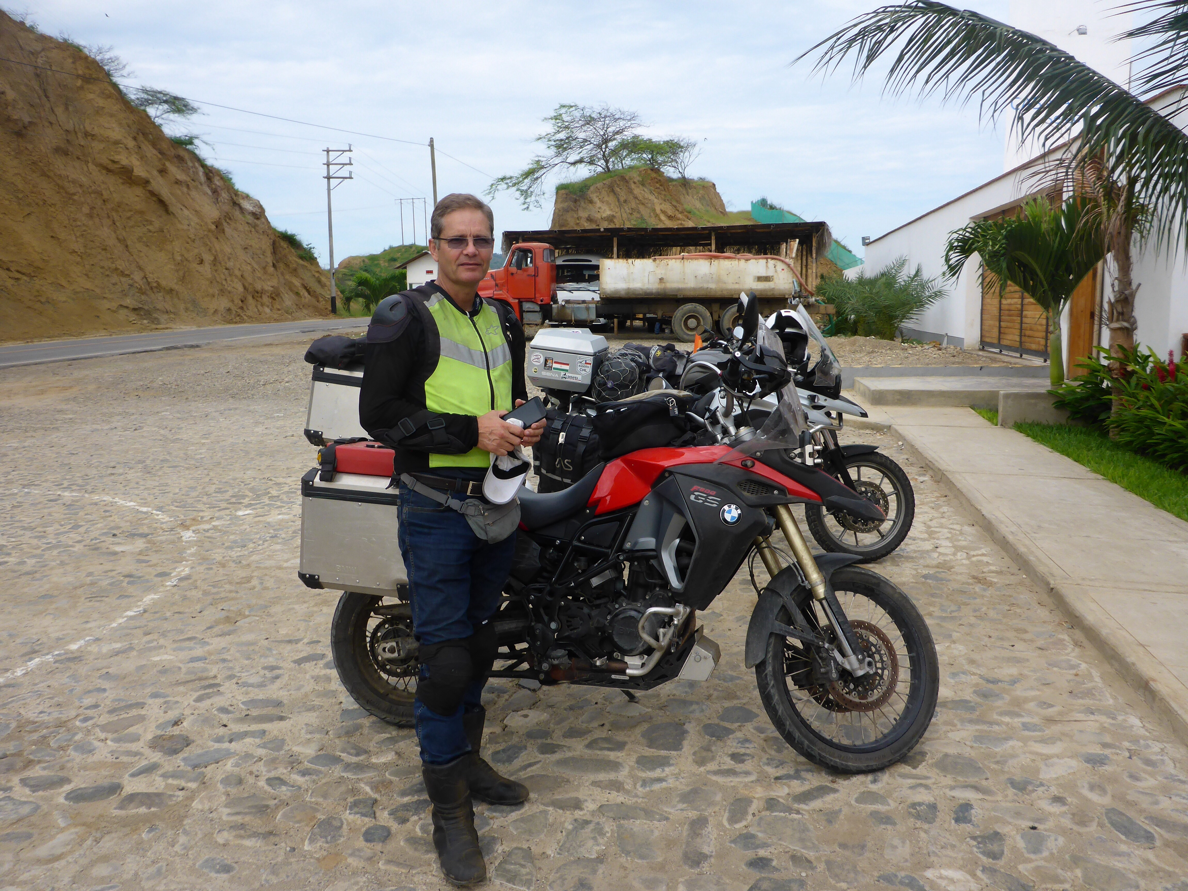 Today is a special day. Kristjan is in Mancora so we will wait for him to catch up with us and we will ride across into Ecuador together, and it is his birthday!! It is also 12 months since we bought Streak and Storm. The weather today feels more tropical suddenly, clouds are building up fast in the mountains – luckily for us it is clearer along the coast. I continue to feast on the vivid green of the rice fields. Some of the towns we ride through must have had so much rain.