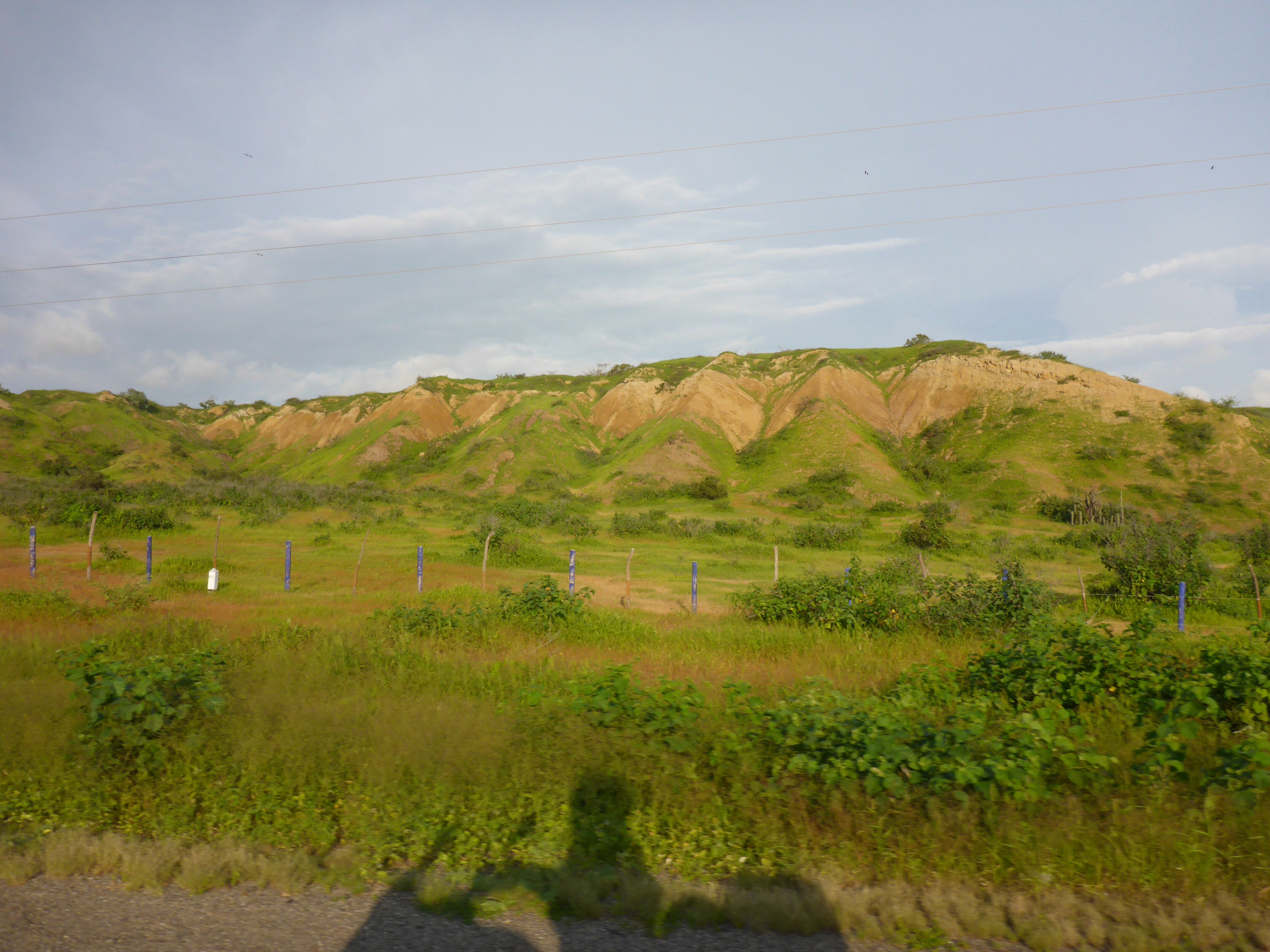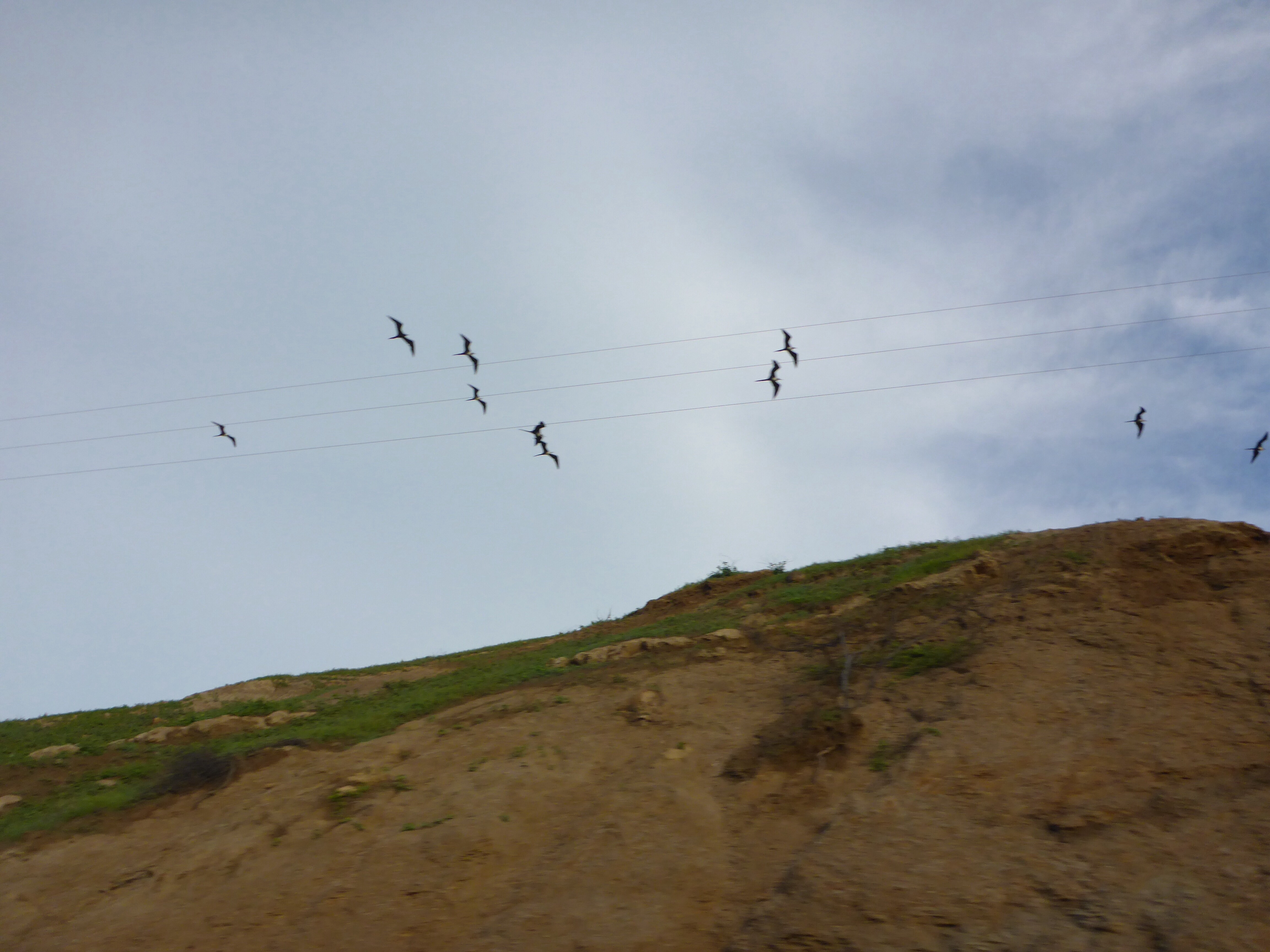 Shortly after Talara, back along the coast, the scenery changed suddenly. It felt like we were in another country. No more grand desert and grand mountains. The mountains were like ribbed, the trees more like stunted thorn trees. We saw birds, lots of birds, that reminded us of mini pterodactyls!! And so many butterflies.