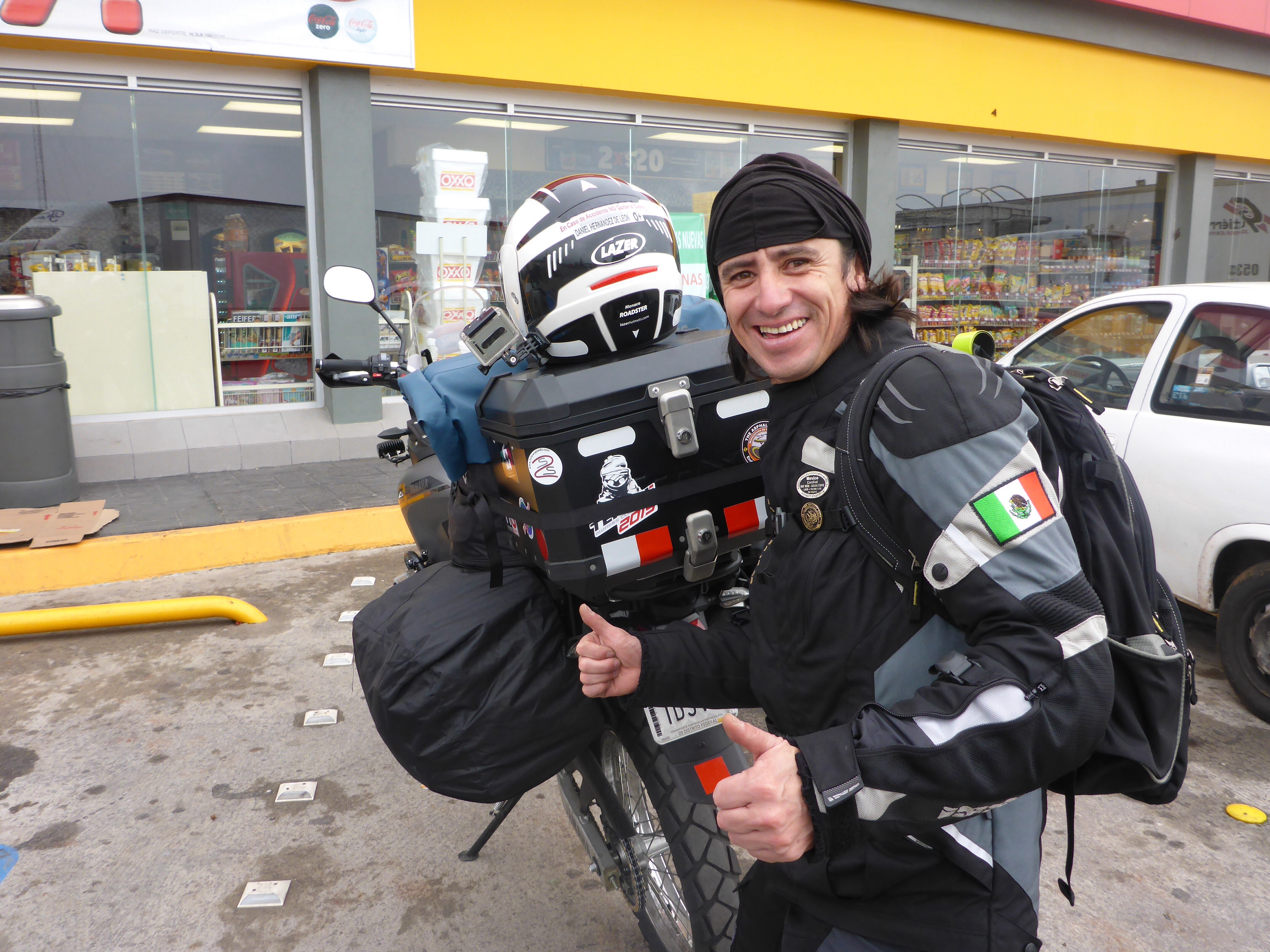 After a couple of hours, we pull over at a petrol station to get a hot drink and warm up. We meet Daniel, from Mexico City. He is on his way to Alaska and today is his first day! I am not sure who was more excited – him or us, for him. Then when we stop for lunch, we meet another biker, Herman, from San Luis Potosi. We spend a hour chatting with Herman. We love the motorcycle fraternity. There always seem to be an instant connection. And we love how traveling on motorcycles enables us to meet and talk to all sorts of people. Car drivers are intrigued and talk to us. This reminds me of a most interesting conversation I had with young Gloria, at Alberto and Anna’s: she asked me so many questions about our travels, such as what happens when you are hungry, what if you couldn’t find any food, where do you sleep, how do you know where you’ll sleep, what happens when you run out of petrol. How can someone so young be so insightful?!