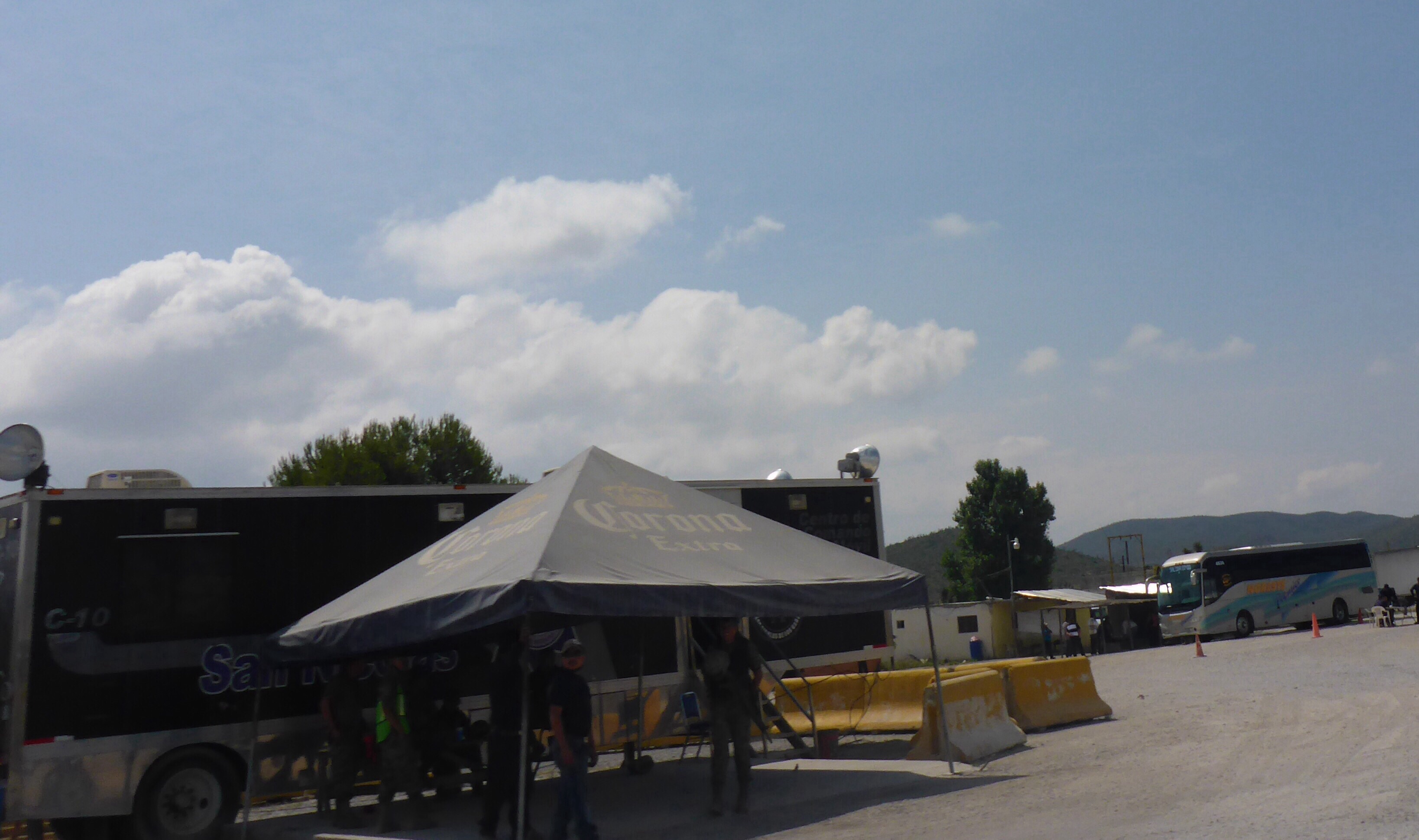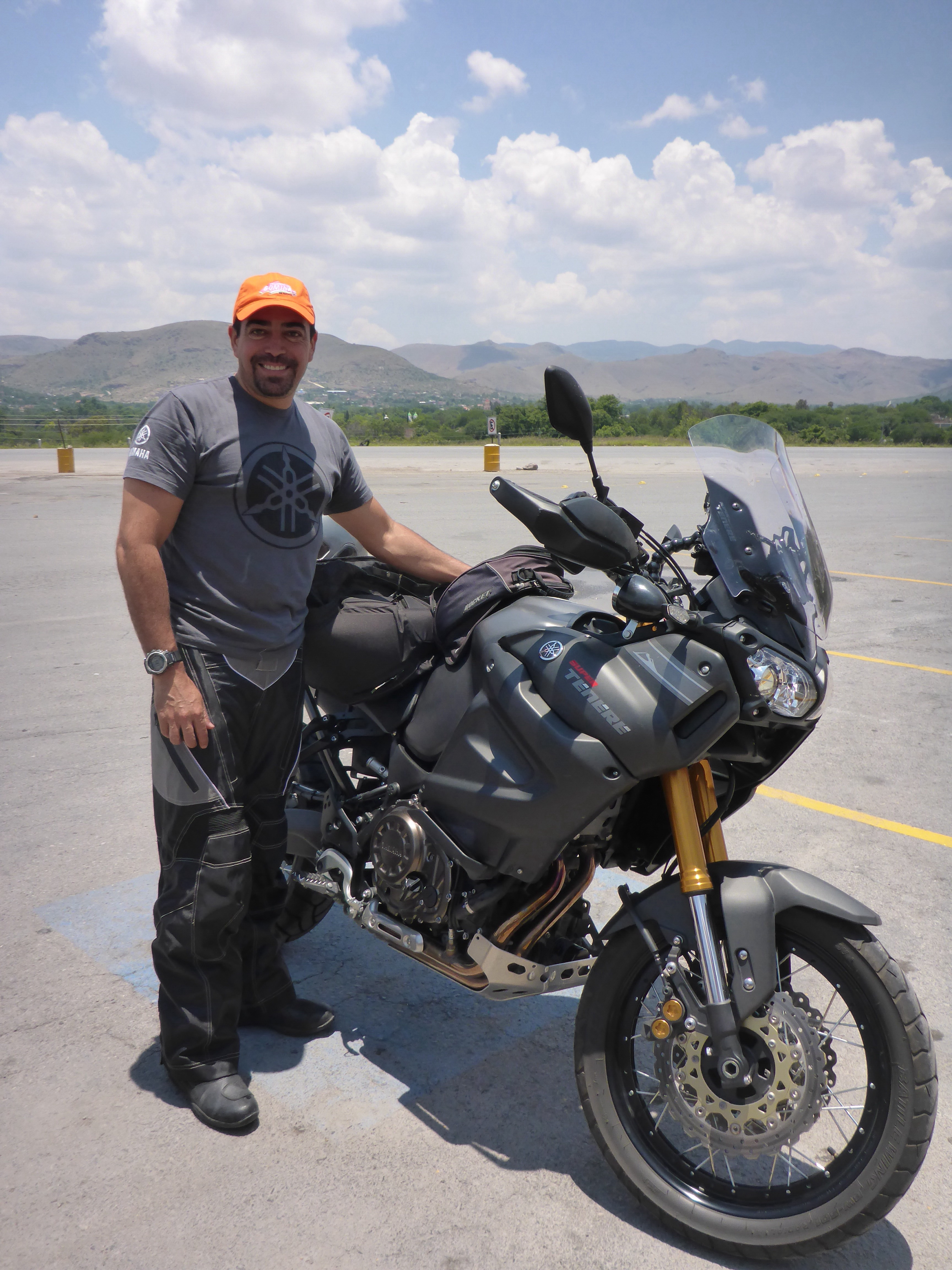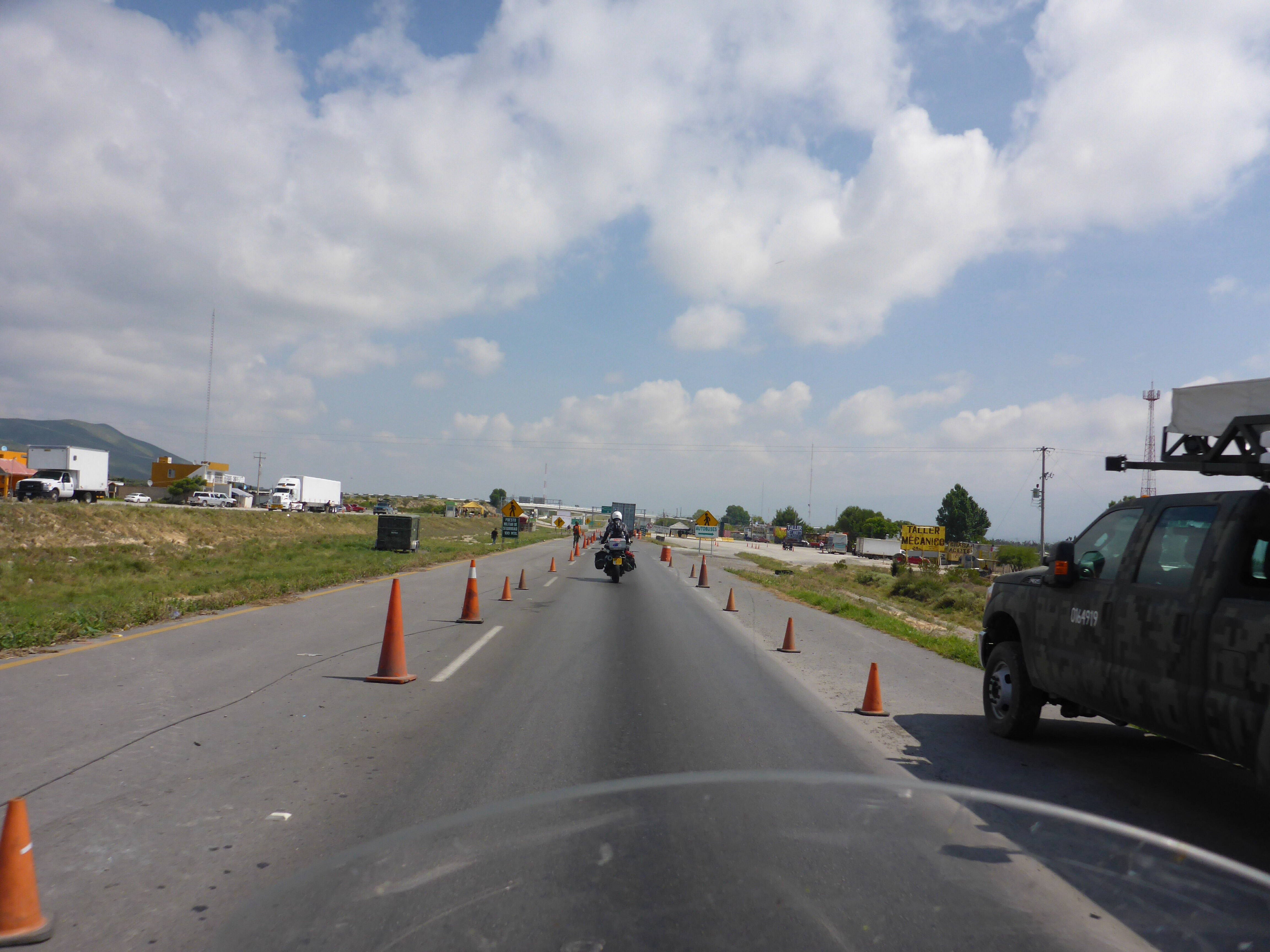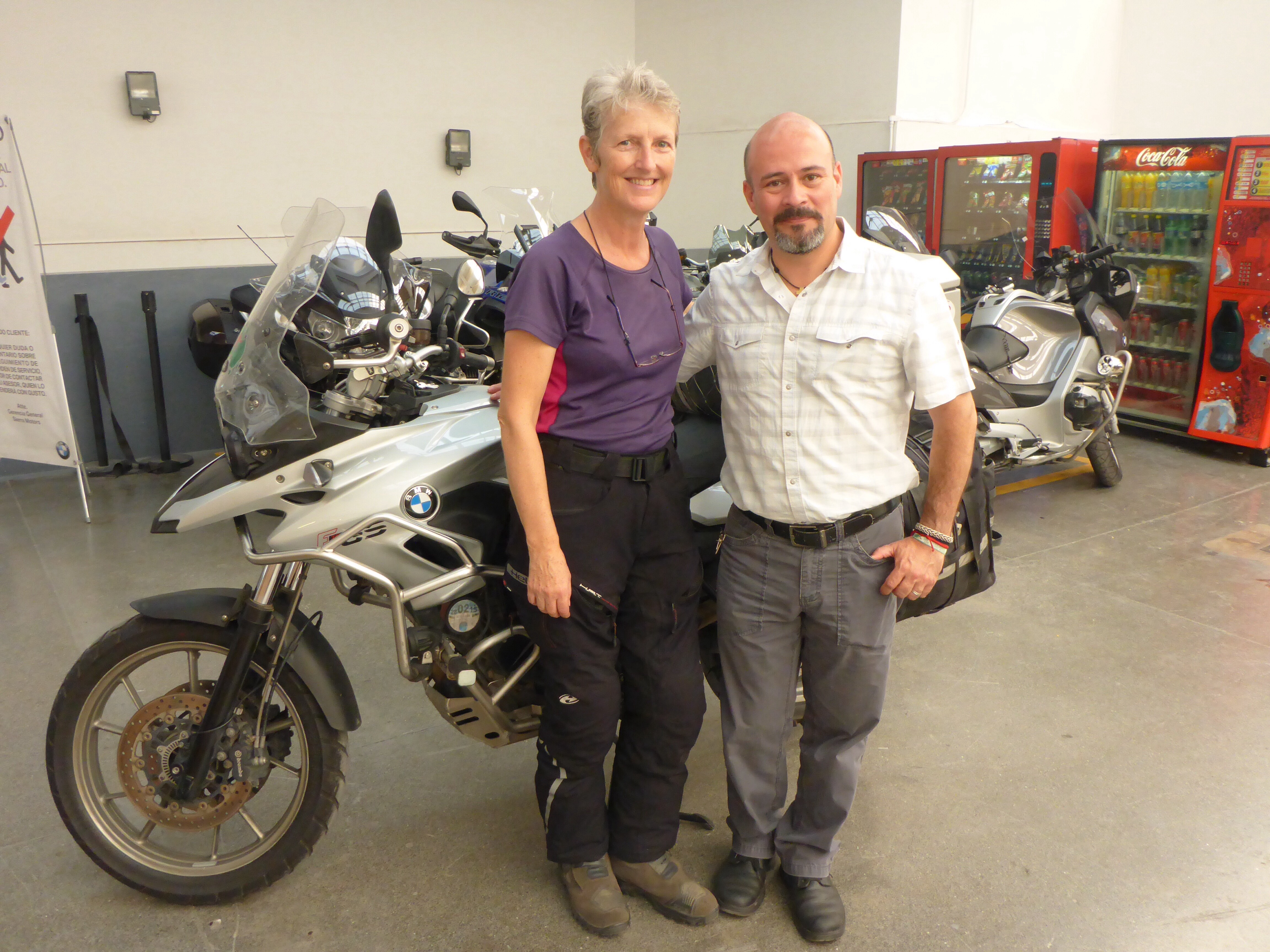 We head straight to … BMW. Streak has developed a squeak. From what sounded like a slight seat groan as I sat on it when we left Mexico City, it has gradually sounded worse. On the road to and then once in San Luis Potosi, we both had a good look and both agreed that it was coming from the suspension area but sounded like plastic squeak rather than metal. An over enthusiastic clean at BMW may have removed any lubrication maybe? We did some research online, sent off a query to one of the motorcycle forums, got a response and left confident the next morning. But as there was a BMW at Monterrey, I wanted someone to confirm there was no structural problem. There we met Juan Carlos, a BMW customer, who became our interpreter. BMW immediately took Streak away, confirmed our suspicions, lubricated the area, ran a diagnostic test on the whole bike and told us we were good to go but will have to have the shock absorbers replaced at our next service. What a relief.