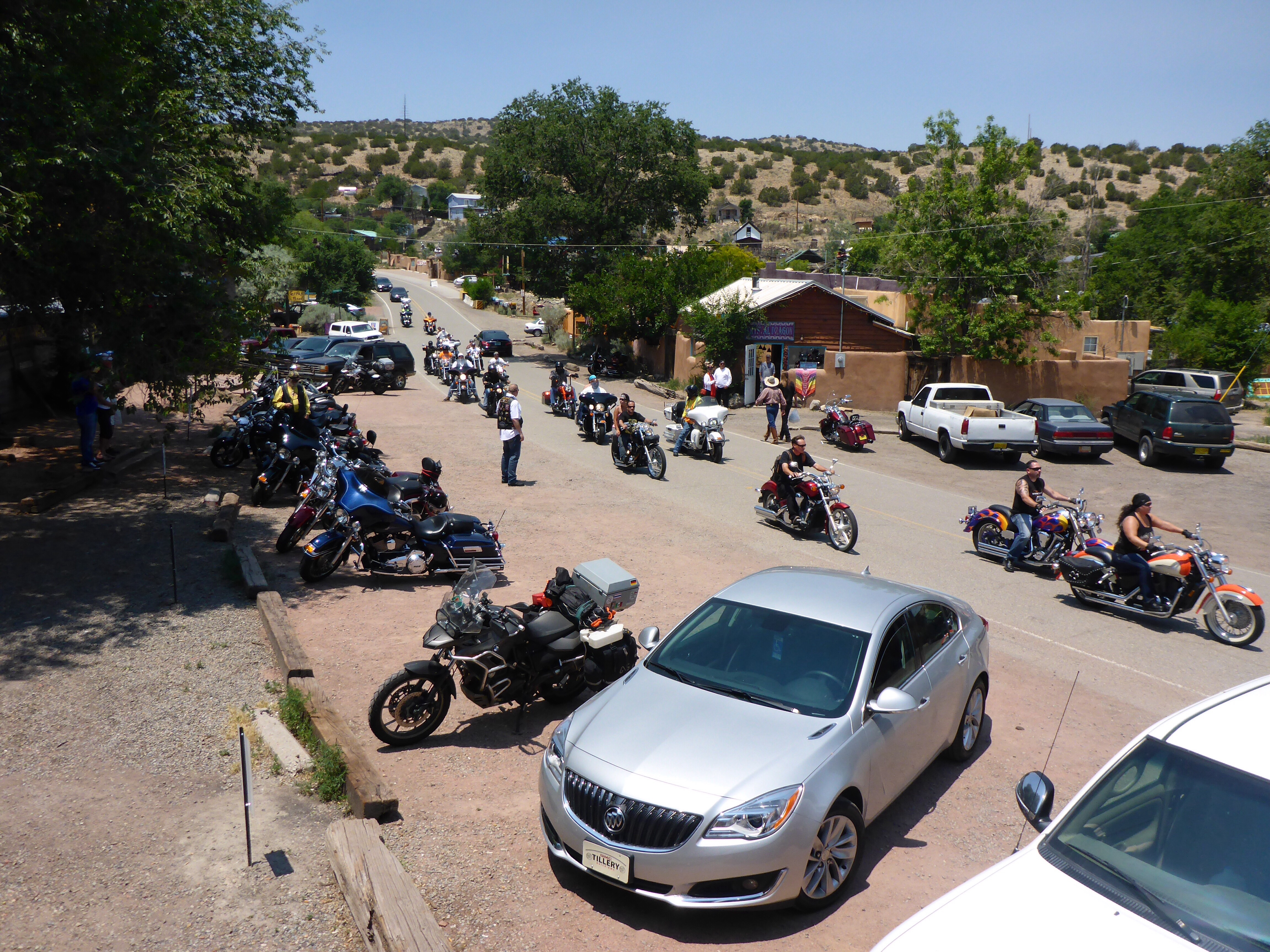 86 Harleys arriving At Madrid’s Mine Shaft Tavern, New Mexico, for lunch