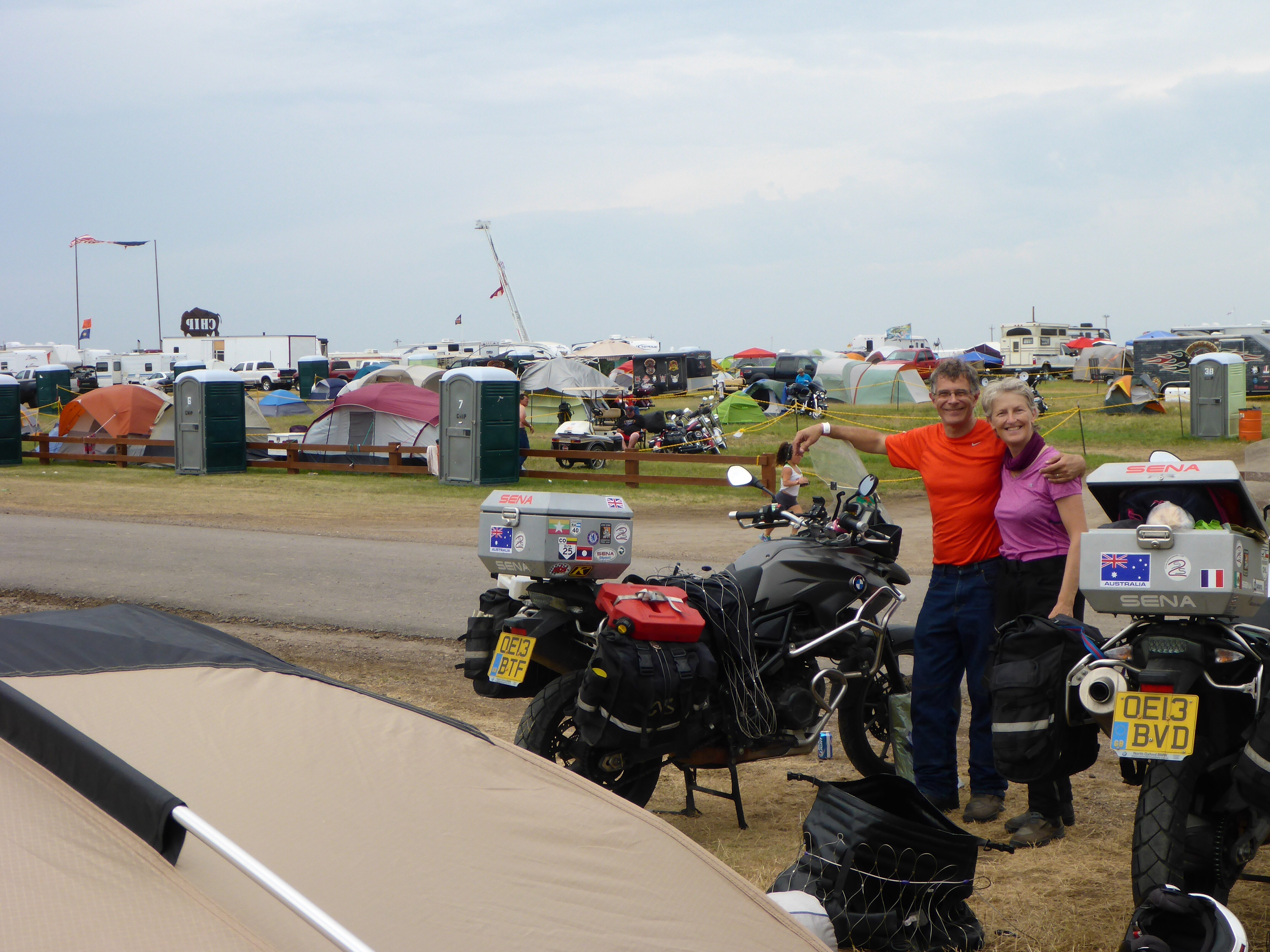 Traffic is not as bad as we had feared and we are quickly inside the Buffalo Chip Campground. Given the heavy rain the previous night, and the churned up grass from ATV’s, we decide to camp close to the West Gate just off the main route through the camp. We realise this will be noisy, but with more rain forecast, want to be able to get out tomorrow. The noise of HD motorcycles is constant as we setup the tent – what will the night bring? We also start to see the various interesting vehicles and their occupants pass us by, we have an excellent location for this.