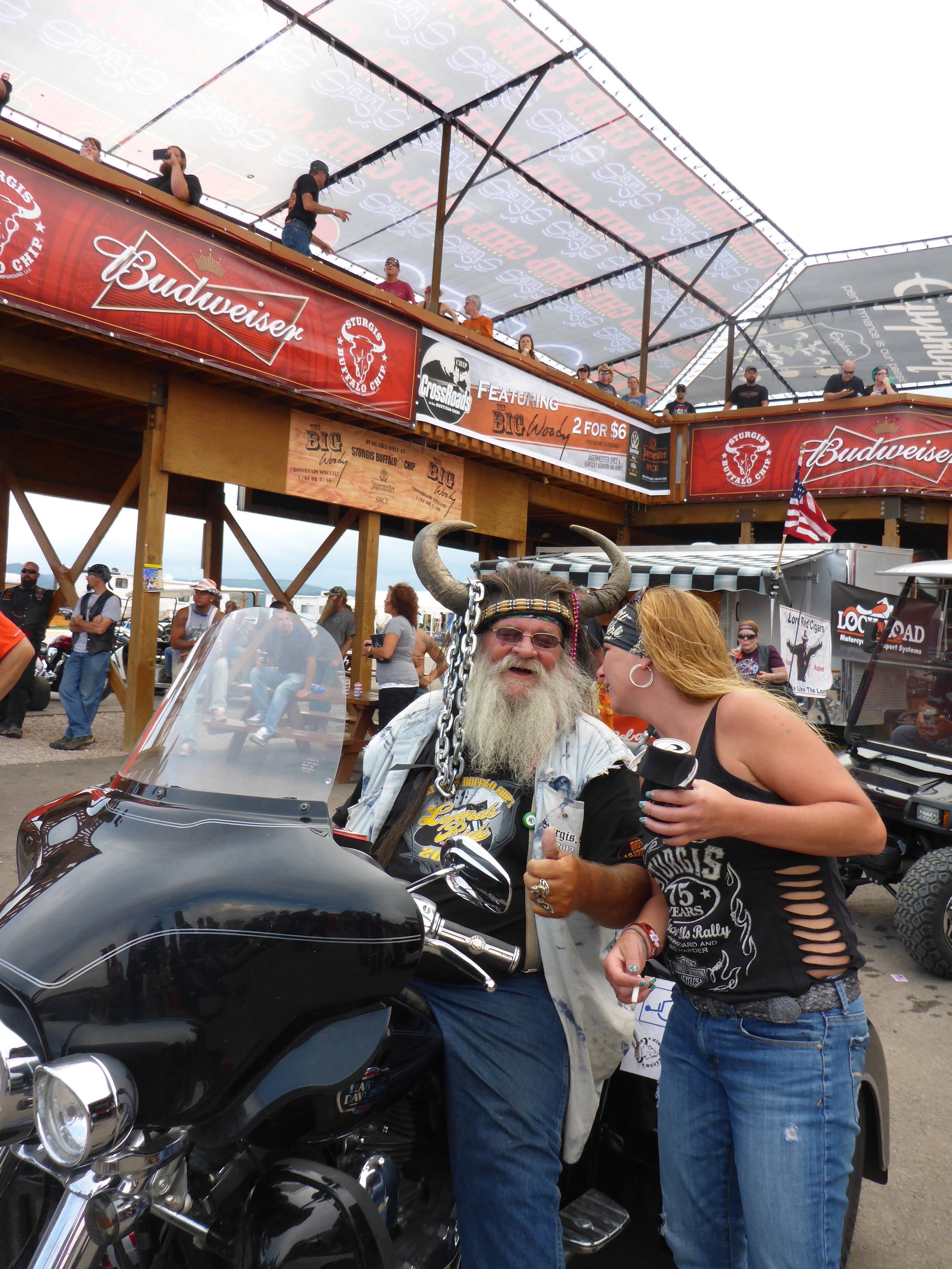 When people heard that we were going to stay at the Buffalo Chip for Sturgis, we received warnings about drinking and fighting. Our impression was that this would be a wild place with all sorts of risks and dangers. The opposite could not be more true. I had expected many, many tents, the reality was that RV’s or Motorhomes as we call them predominate. Many are large house sized vehicles with trailers for motorcycles. Yes many people trailer their HD motorcycles to Sturgis, probably to keep them clean, given the efforts we have seen in this direction on the road. The impression I have of the hundreds of acres of RV’s is that of a shantytown we have seen in other parts of the world, with much improved interiors. I suspect this is due, as mentioned previously, the largest age group here seems be be the 50+ or, as we are known, the ‘baby boomers’. With age comes wealth and this was definitely reflected here. People are here to have a good time in a more mature way than we would have done in our 20’s. We see a number of interesting and non politically correct activities that in this environment do no harm and probably take one back to one’s youth, so why not?