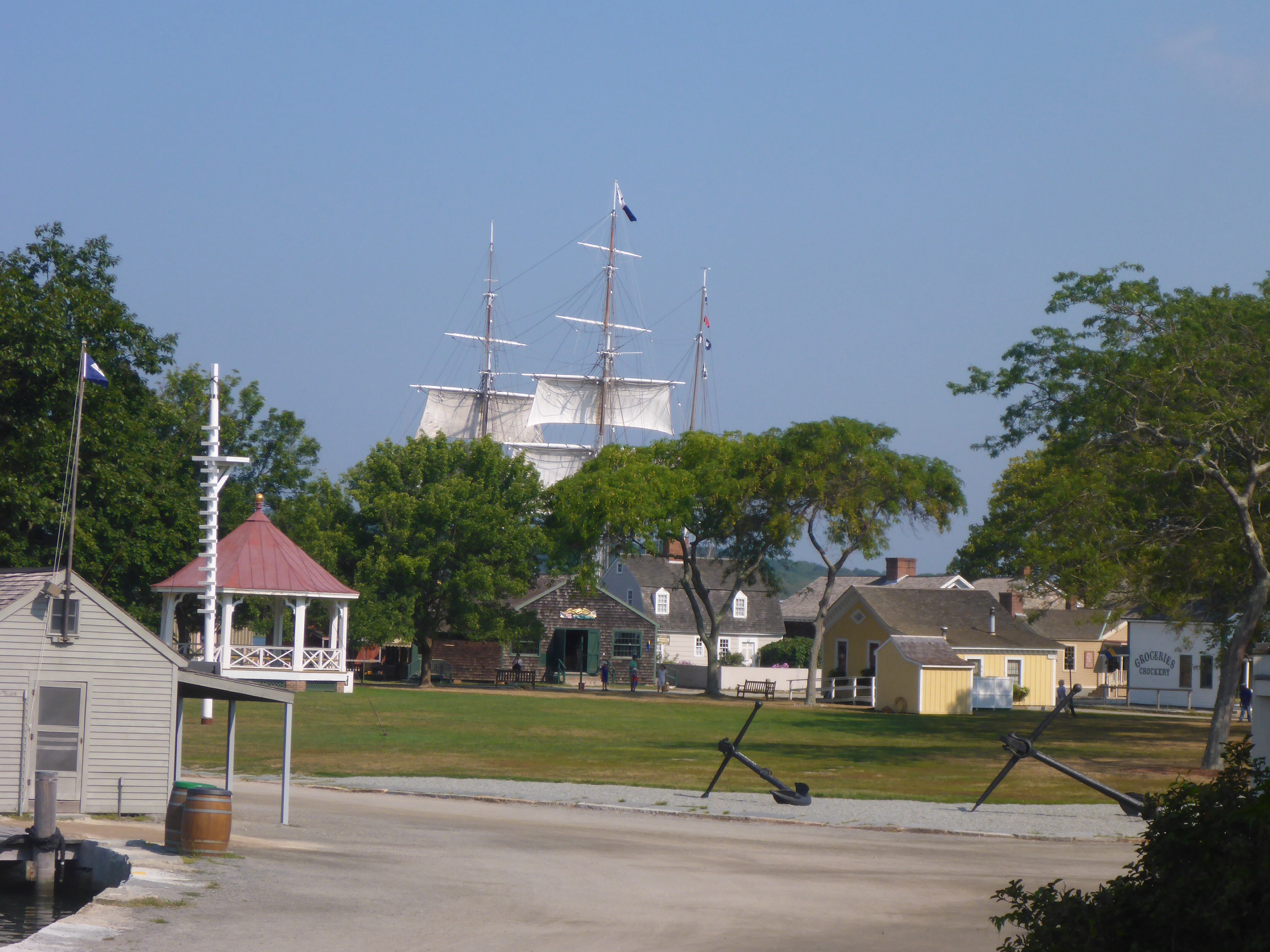 First stop on our loop is Mystic, a small seaport in the State of Connecticut and home to Mystic Seaport: The Museum of America and the Sea. This museum was founded in 1929 as has developed over time into America’s largest nautical museum which recreates the era from the 19th century of wooden sailing ships. The village has a number of operational workshops and other cleverly constructed historic buildings housing various museums. The inclusion of a working dockyard for the repair of wooden ships which one is allowed to wander in freely adds to the interest.