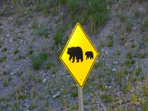 Cute road sign, mother and baby bear. But that poor old real one doesn’t look as though he has much life left in him. xx
