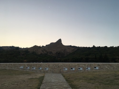 A low wall and a grassy area distinguish ANZAC Cove from the surrounding area which is thick with trees and shrubs. I am drawn to the imposing hill called “The Sphinx” which dominates the landscape and must have seemed almost impossible to climb to those first soldiers ashore. I am struck by the simplicity of the the location, just a couple of low walls and some plaques describing the events. I have only ever seen it on television filled with people for the dawn service. We are lucky to have the location to ourselves, not a person in sight.