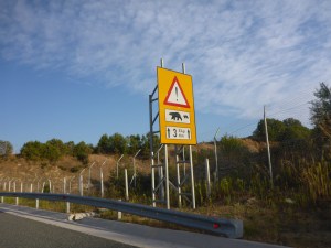 Bear and cub crossing sign in Greece