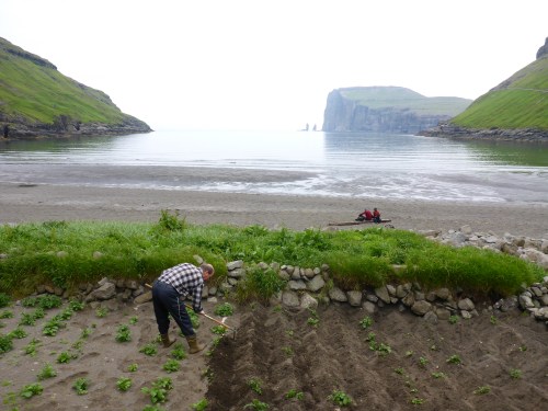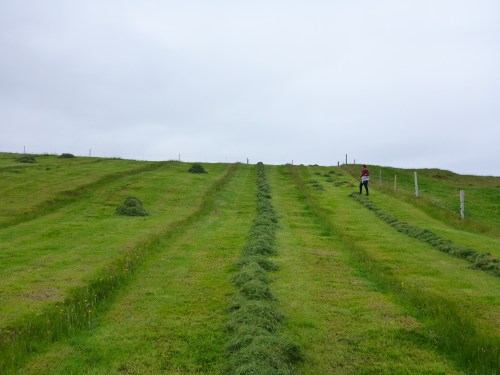 As I stood looking out over the rocks, out to sea, I struck up a conversation with this guy who seemed to enjoy the area as much as I did. It turns out Jørgin is a local, and he and his wife and family are over to prepare the hay for his 88 year old father-in-law’s beloved 8 sheep, which Jacob keeps as a hobby but the whole family gets involved in looking after. Jørgin‘s wife Unn came over and we chatted for a while, until it was time for Jørgin and Unn to return to the field and get back to work. Jokingly, Unn suggested we go over and help to which Anthony suggested they could actually charge tourists to help them.