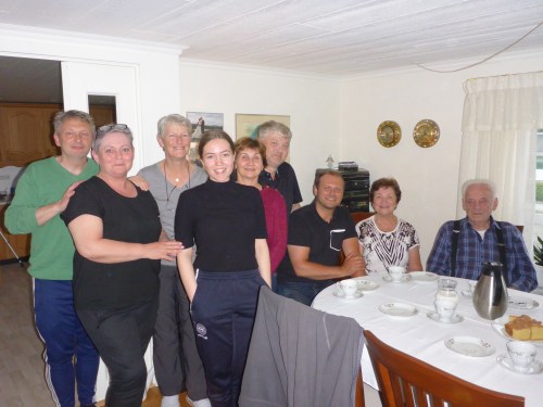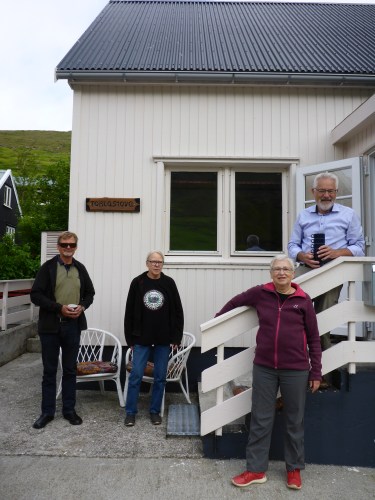 Not only did we have a sumptuous dinner of home made leek soup with meat balls, carrots and potato dumplings, home dried sheep, cod which Jacob caught earlier today (at 88, he still goes out fishing on his own every day), various cooked meats, cabbage salad followed by all sorts of chocolates and cake. We learned so much about life in the Faroes, including social security, employment insurance, retirement, higher education.