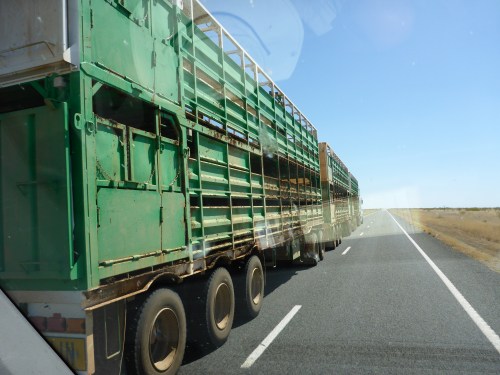 Overtaking a road train which can be 53 meters / 170 feet long.