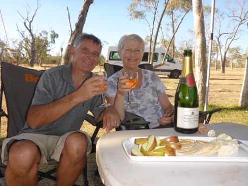 We are meeting, by chance, friends Gary and Heather who are also roaming the west of Queensland. Together we celebrate Anne and I having known each other 46 years, having first met in August 1974. While only planning to spend a single night, the good company and the relaxed atmosphere around the waterhole enticed us to stay a second night. Perfect!