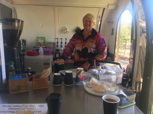 Anne has picked Gidgee’s Bush Camp in Morven, a farm stay, as our next stop based on the good reviews she found online. We are met by Kylee the owner in the office that doubles as the showroom for another business, Gidgee Smith Bags, manufacturing high quality colourful bags and holdalls. We understand from another camper who buys them for promotional items for their off-road accessory business that the bags are tough and can be used for just about anything. Another ingenious bush business. In addition they run a coffee van and bar. Talk about hard working. So if you need bags, gidgeesmith.com.au and you will be supporting both Australian manufacturing and regional employment. Kylee also crafts wire sculptures in her spare time and organises workshops to bring remote communities together or help people at risk. Mick and Kylee were both very inspiring people.