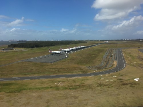 I depart at 11am, leaving poor Anne to drive the camper van back to Brisbane over the next two days, it must be harder for her as she is out of the loop and we are not together.  An hour later, we are arriving in Brisbane.  We land on the new runway giving a new approach to the airport for me and taxi route to the terminal. Parked aircraft still fill the old cross runway and there is a much smaller number of aircraft in the terminal area, most for Queensland domestic routes.