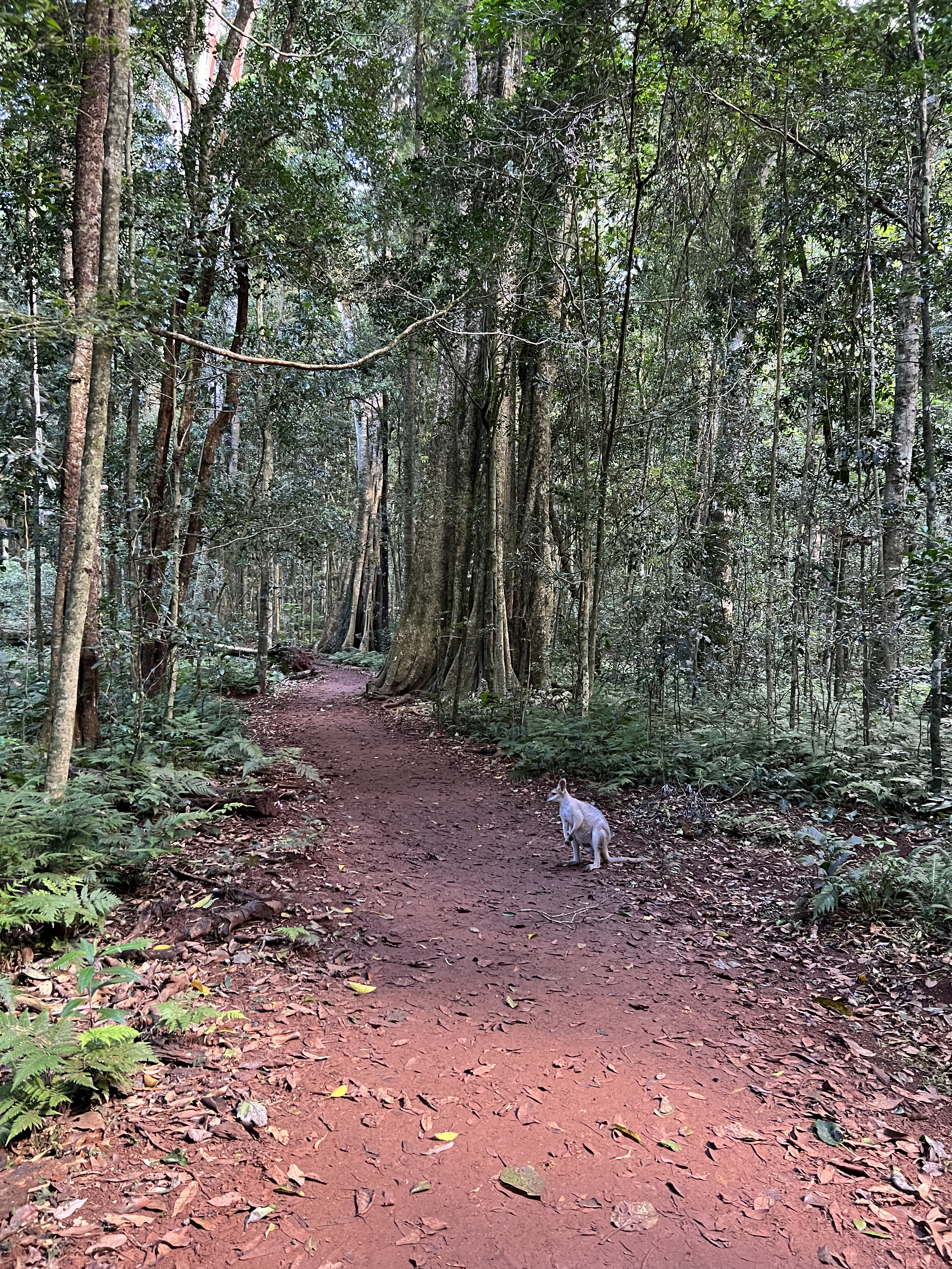 The Bunya Mountains is the last stop on this little adventure. The mountains rise from the surrounding plain and are visible from Dalby some 50km away. Crossing the farmland and floodplain crossings as we travel north, the mountains always seem far away. We enjoy seeing deep blue skies finally. As we start to climb, farmland gives way to scattered temperate forest, then, suddenly it seems, we are enveloped by massive bunya and hoop pines touching above our heads as we enter the real forest. The area was heavily logged. We are just too late for the Bunya nut season and can only see the remnants on the forest floor, however not a bad thing since the nuts are the size of small pineapples – being hit by one could be very painful.