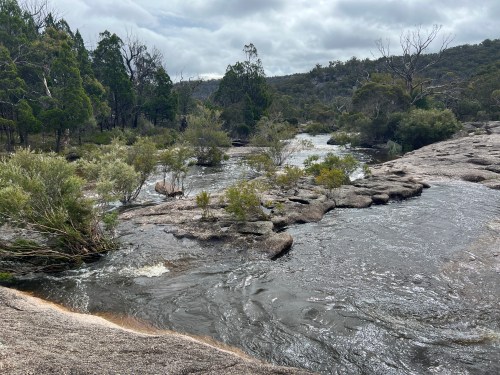 Day 2: My iPhone’s weather app shows cloudy skies all morning but no rain. This is confirmed by the bureau of meteorology’s radar map but unfortunately this is in conflict with the sound of rain on the roof of the mostly waterproof tent. So much for relying on technology. I had used the weather forecasts before we left to determine what we brought with us, and rain gear was noticeably absent! Jeans are not that waterproof but it is what we have.