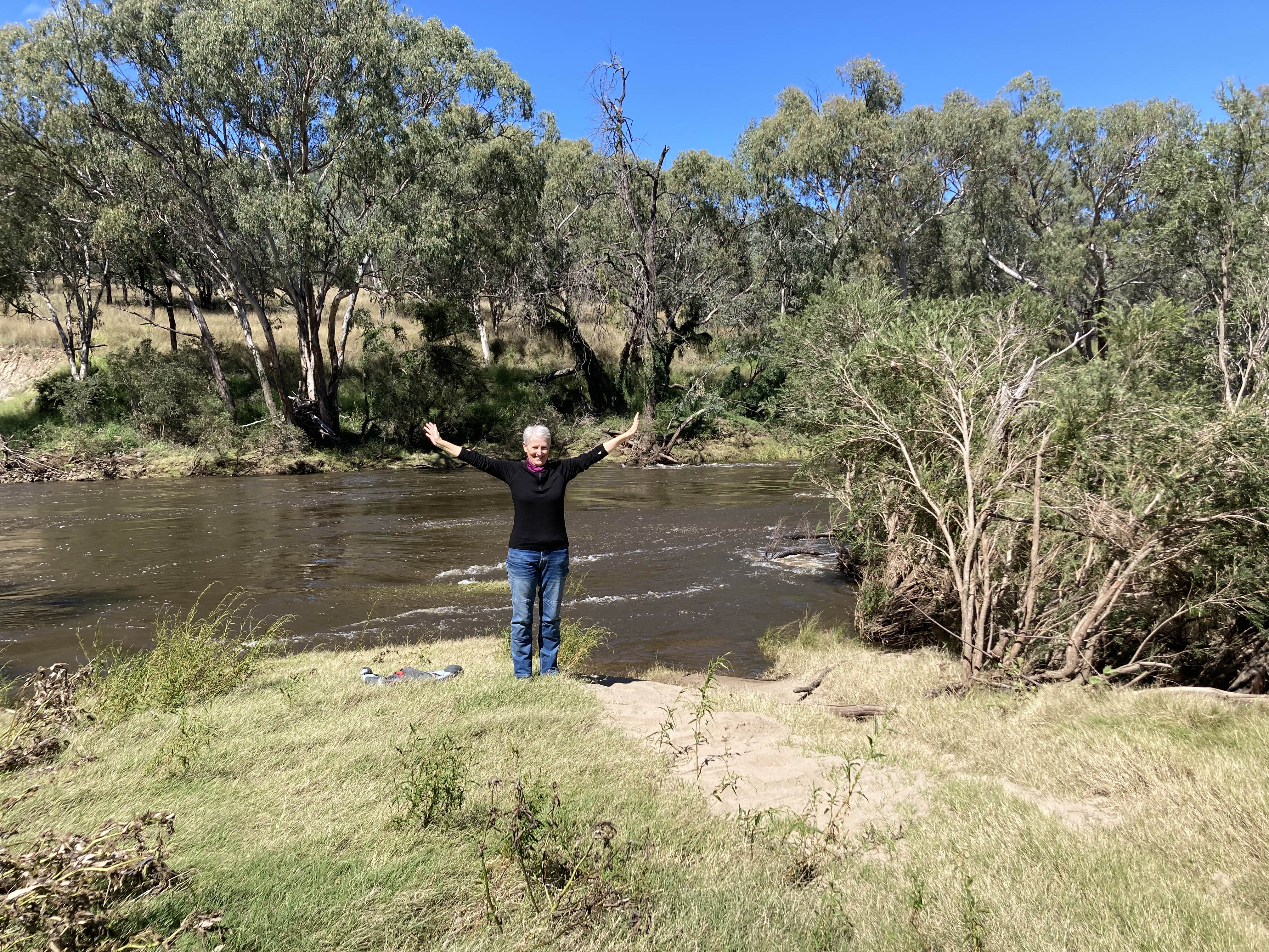 The Bruxner highway from Tenterfield to Texas was a joy to ride: undulations, twists and turns great views and little traffic. Stopping at a river crossing, we enjoy a leisurely break on the banks of the Dumaresq river, which had been in flood only days earlier as evidenced by damage to trees and bushes along the riverbank.