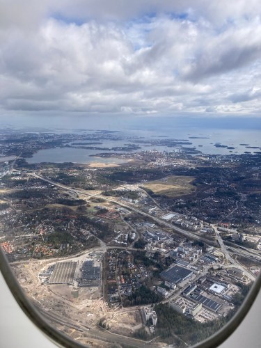 At Immigration in Helsinki as a non EU person I have to join the long queue while Anne, courtesy of her French passport sails through the automated machines. We have a tight connection on 45 minutes, but with a helpful move to the front of the queue thanks to ground staff, past a couple of tricky questions like “where are you staying.” “How long for?” “How are you leaving?” Then I am in the EU racing after Anne, just make the departure time cutoff, and we are told we are waiting for passengers from a connecting domestic flight. Hurry up and wait.