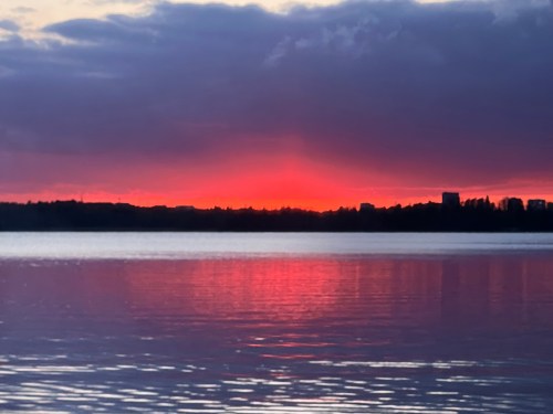 Birthday sunset from our “igloo” over Laajalahti Bay