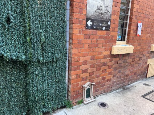 I am always amazed at how much one can pack into a small amount of time, especially as I can while away the hours doing next to nothing, especially if the TV is on. Saturday is Anne’s relaxing day when she is in Brisbane and Anne wanted to see the “little doors” near South Bank. “Little Doors” you ask, so did I. It seems that the little people have been moving to Brisbane and setting up home, or front doors at least. We head for Fish Lane and lo and behold there they are. Only three so far but I am sure more will move in to this vibrant location. While looking at the first door, not easy to find, we explained to a passerby what they were. When we ran into him later and told him about the location of the second door he had to go and view it. I hope we have not created an addict!
