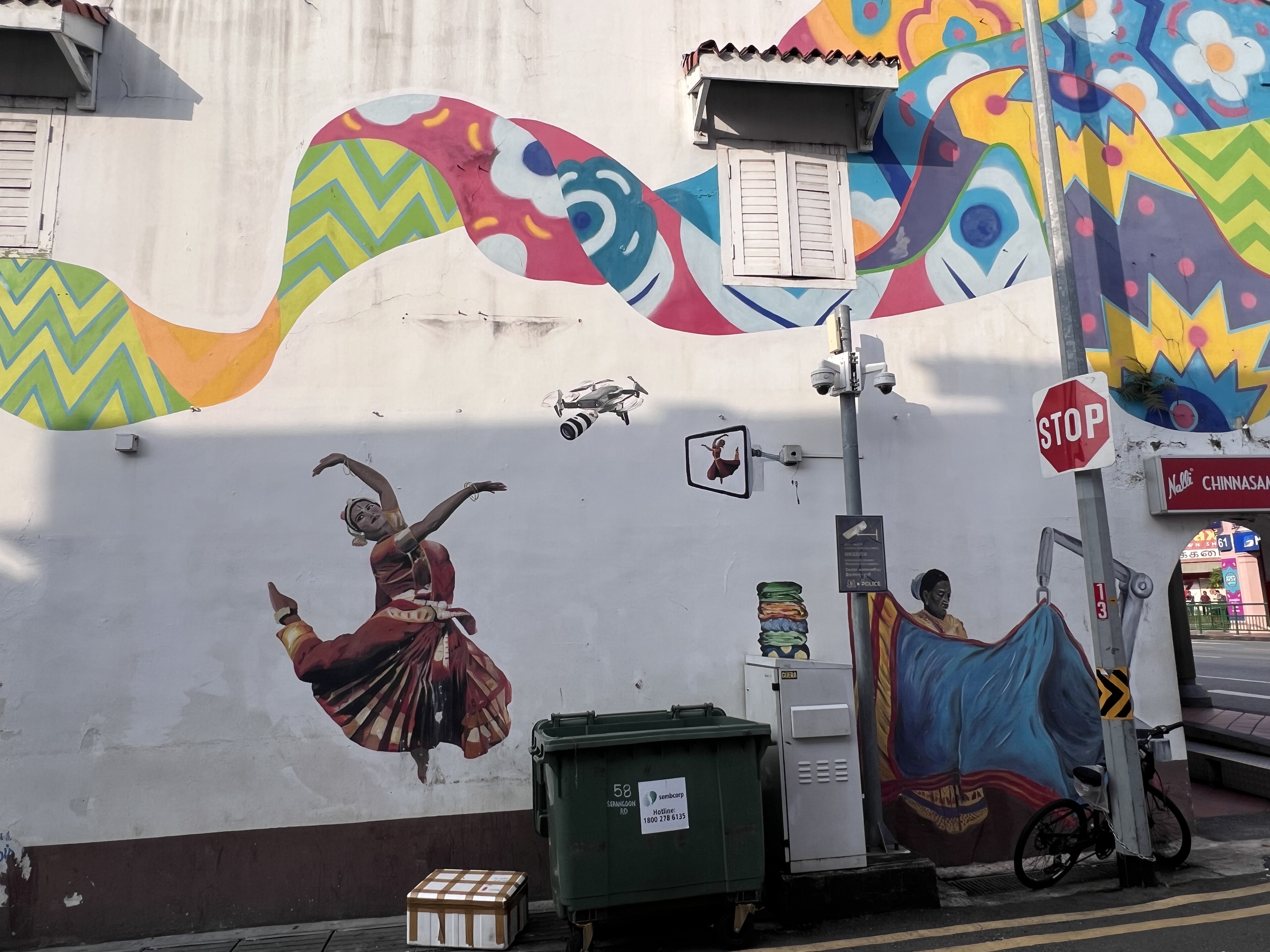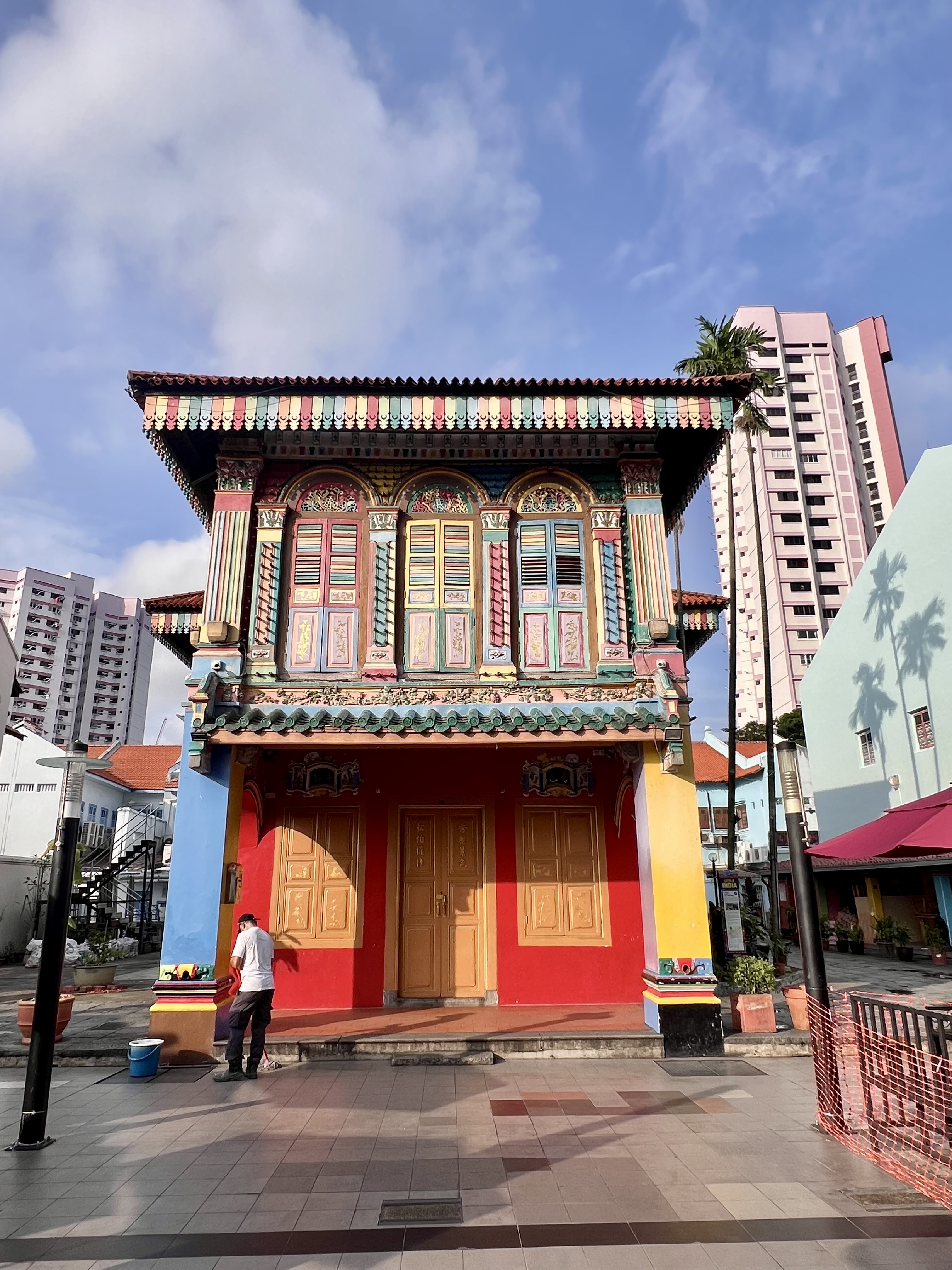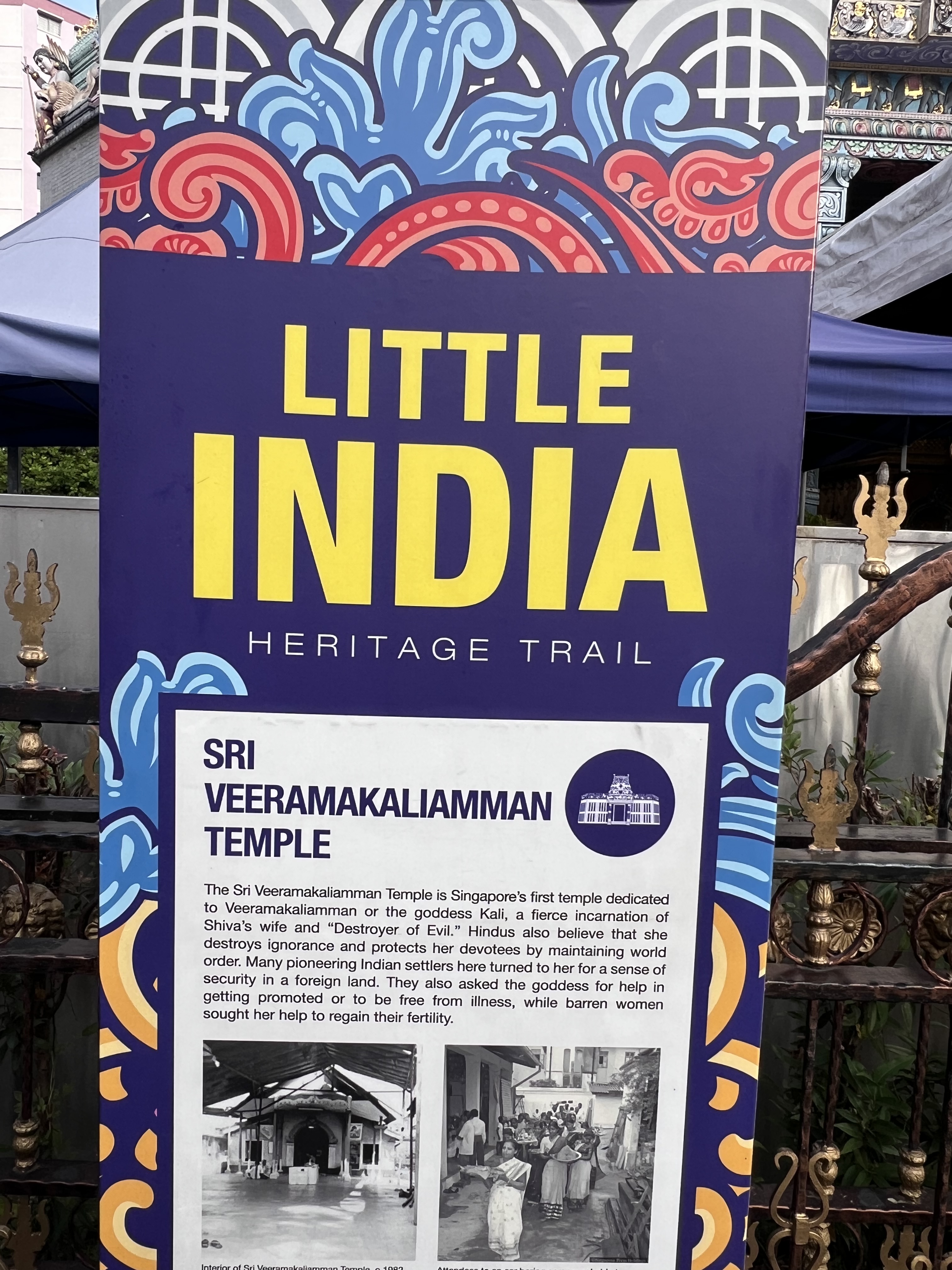 At 7:30 am the quiet of the morning is broken by the tolling of the bell and the nearby Hindu Sri Veeramakaliamman Temple. We are staying at the Hilton Garden Inn Serangoon in the heart of Little India in Singapore. While Singapore is known for its modern architecture, fabulous gardens and attractions, we both enjoy the more historic areas such as Little India. The buildings here seldom exceed a couple of stories and it can feel as if the surrounding skyscrapers are crowding in on this small quaint area.