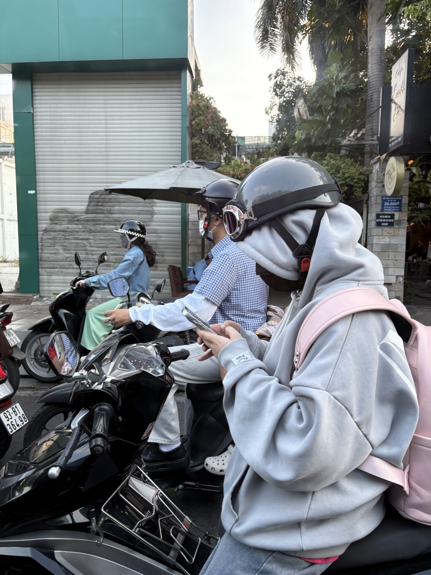 By now we have adapted to crossing roads at a steady pace with the mostly moped traffic deftly weaving around us. It is still a little unnerving as a swarm of mopeds sweeps up the road towards you: do not to turn, look or panic. Remember, do not hesitate, your path has been factored in by the riders. Coming from wearing full face motorcycle helmets, the small half helmets seem more like cyclists headgear and the words “Style and Fashion” emblazoned on one pink helmet do not give me confidence as to the safety features of said helmet.