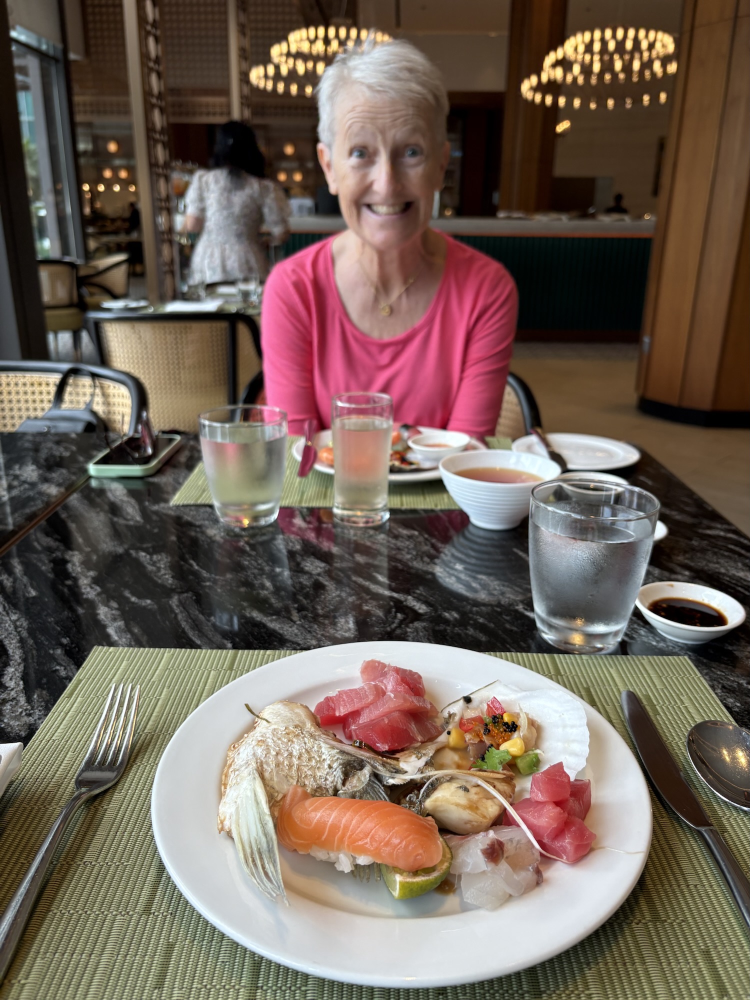 The Lotte Hotel Saigon buffet exceeds all expectations, we are overwhelmed with the choices and the service was exceptional. We had advised one of the managers of our food requirements, no lactose for Anne and coeliac for me. As we head to the buffet to load up, a member of staff follows us, he has been informed of our intolerances and is there to advise us on what we can eat – what service! Anne has rated them highly on TripAdvisor, well deserved.