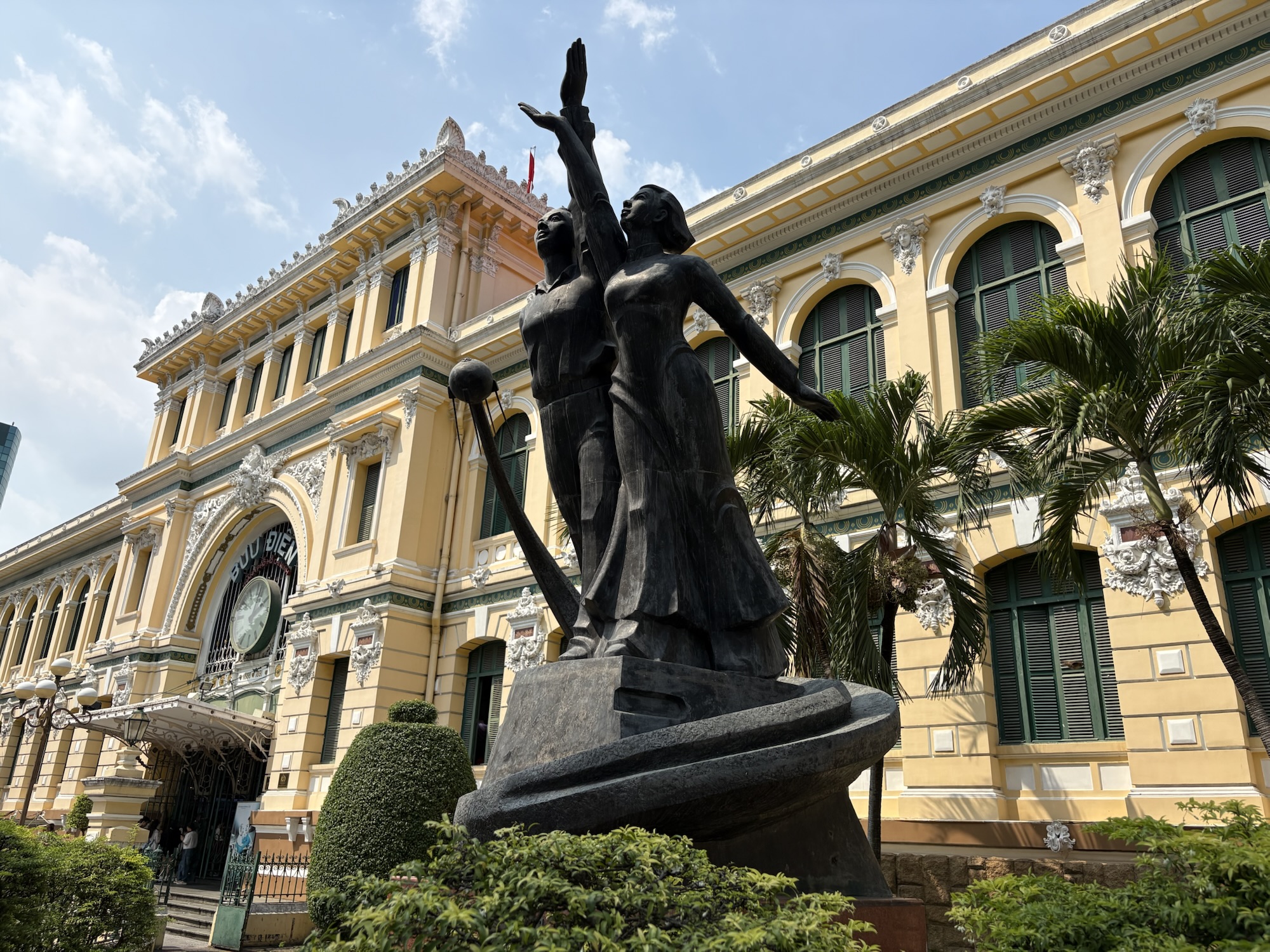 We return via the Saigon Central Post Office, built in the French Colonial times is described as “French Colonial” style. It was the centre of an extensive telegraph network and today attracts tourists from around the world who queue to send postcards home.