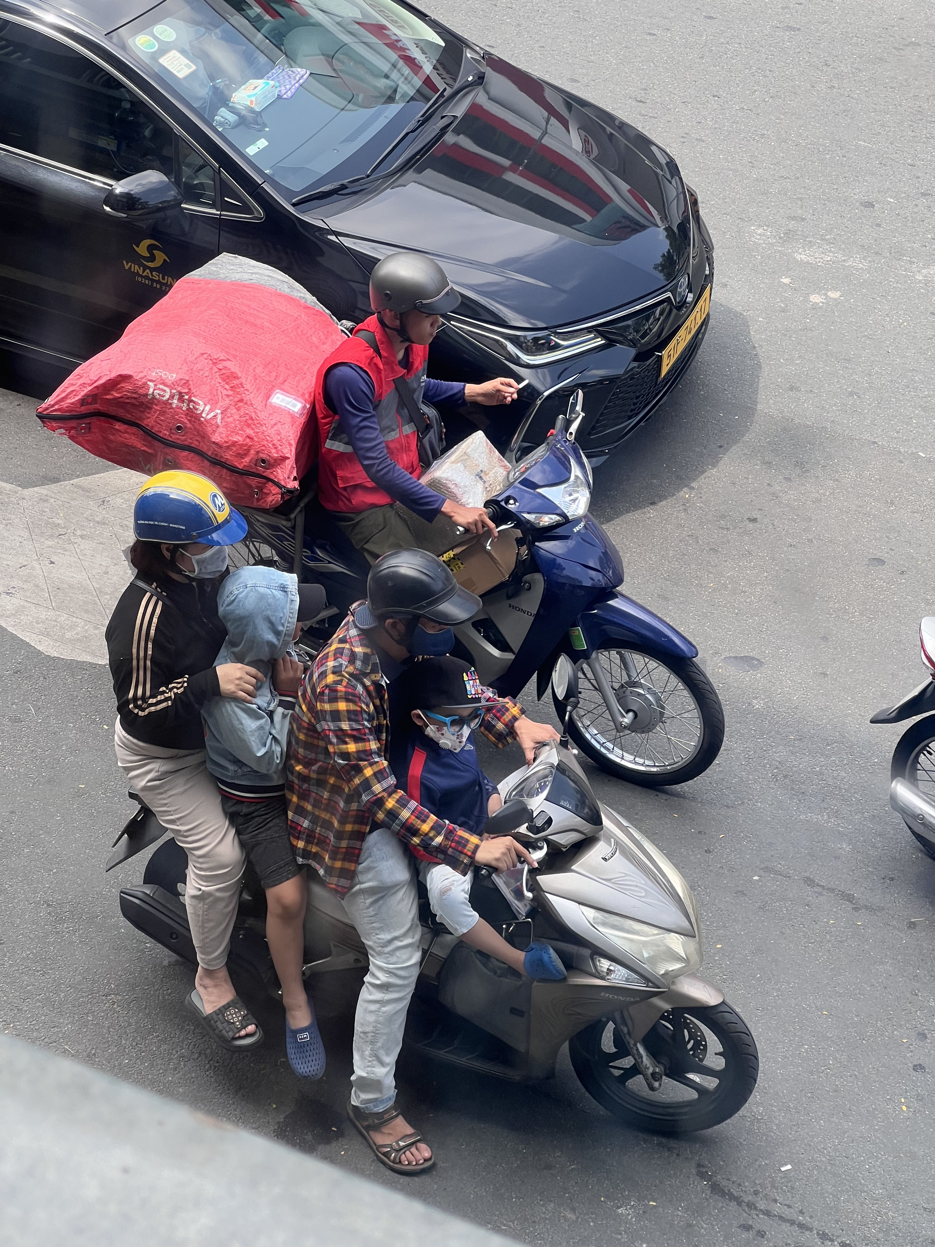 As we are whisked, at times what seems to be walking pace, to our hotel, we get to understand how the traffic flows work in Ho Chi Min City. I am reminded of an experiment I saw once where a scientist progressively filled a container with rocks, sand and water and how at each stage the container appeared full, you could add another layer. The cars are rocks and the mopeds sand. The mopeds seem to flow between the cars like sand between the rocks, I am assuming that drones one day will fill the gaps between the mopeds. Given the ingenious carrying capacity of a moped, why do we in the west require cars in warmer climes? A nifty parcel rack and dual hook combination below the handlebars will carry all one’s shopping and parcels. Three up is not uncommon and four at a pinch. Given the packed pavements, one wonders how a move to motorcars would be catered for, however it has happened in China where the move has been from bicycles to cars in two decades. How was that done?