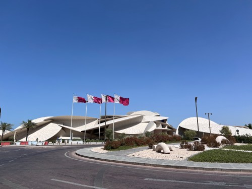 Qatari flags outside the National Museum of Qatar