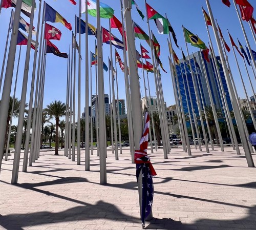 On our 2nd day, we head to the Islamic Art Museum, via the flag plaza. Interesting to notice someone obviously removed the US flag and tied it up close to the ground…. No doubt a reaction to the recent political events…