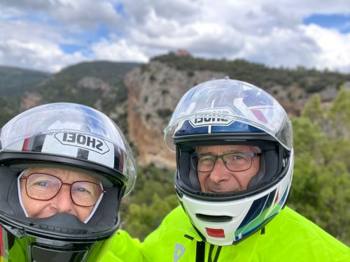 The balmy weather that greeted us on our arrival in Bilbao and kindly rode with us to Zaragoza has parted company and a chilly morning in single digits Celsius greets our departure from Zaragoza. We successfully negotiate the two levels of underground car park and are soon heading heading south, well rugged up with winter thermals and winter gloves to keep us warm. The heated grips still work, yeah. Unfortunately the dexterity required to operate cameras is sacrificed, so fewer of Anne’s great riding photos will populate this blog entry.