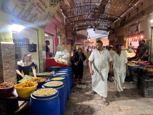 After a shower and a rest, we head down to the old market square.  What a delight. We are welcomed by so many stall holders in the souq as we wander through the narrow lanes.  Bienvenue!  How refreshing to be in such a place and not be accosted to buy something.  The beauty and advantage of little tourism to date.   In fact we do not see a single tourist.