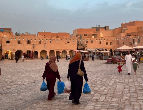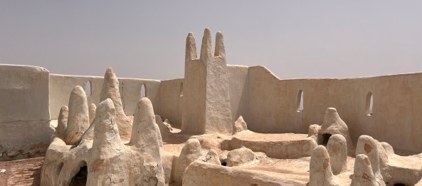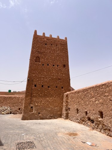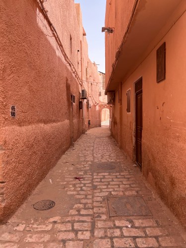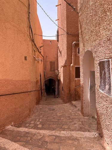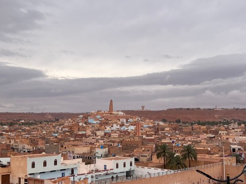 A bit of background first. Ghardaia, a hill top village that lies within the M’zab Valley about 600kms south of Algiers and is part of what is known as a Pentapolis,  comprised of five walled villages, together with Melika, Beni-Isguen, Bounoura, and El Attuf.   It dates back to the 11th century and was founded by the Mozabites, an Ibadi sect of the Berber Muslims. And unsurprisingly, it was declared a UNESCO World Heritage Site in 1982.  All five are similar hilltop mini citadels, each with its own rampart, mosque, watch tower, cemetery.   Ghardaïa and Melika are the only ones of the five that housed not only Ibadites Berbers, but also Malekits Arabs and a Jewish community until the Algerian Independence.
