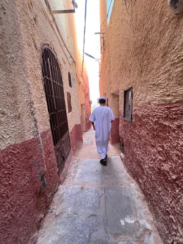 We see our first tourists in a week here – so many!  Must have seen a dozen!!  I knew we could only visit this city with an official guide. While Hafid is an official guide, we are given another Ben Isfuen guide to take us around. Very kindly, they have provided us with Taha, a 19 year guide who spoke excellent English. First, we must read a huge sign which clearly states that we must not take photos of anyone.   At one point during our visit, I wanted to take a photo of the market square pointing away from people. But in the distance, there was a child walking away. I had to wait to take the photo.