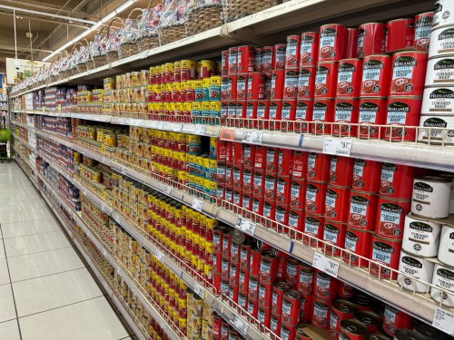 We certainly got our 10,000 steps in as we wandered through the levels of the mall. Our destination amongst all the luxury was the supermarket. I am always interested in what a country enjoys and this can be identified by the isle that has just one product type. In Kazakstan, it was tomato sauce and here it seems to be corned beef, with fish heads and mango, although we had to buy some peanut M&M’s which are Anne’s favourites.