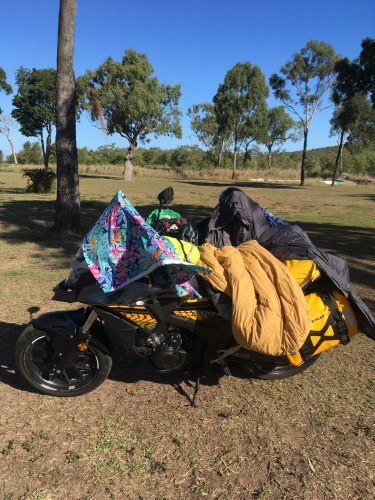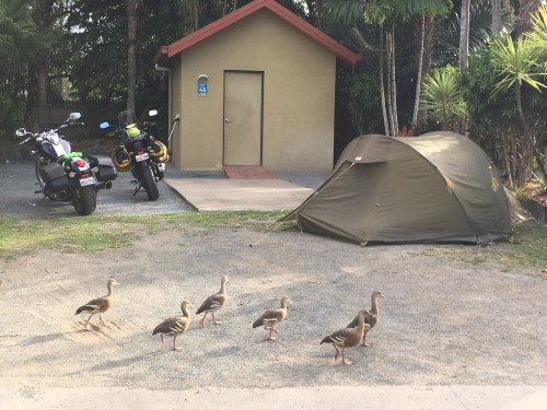 Arriving at Airlie Beach we head for the campground where Anne has booked an en-suite campsite. A first for us and I have to say that we really enjoyed having our own shower and toilet a few steps away. Great for storage of the motorbikes’s gear as well as recharging phones, iPads, cameras, helmet intercoms etc. No more cramped tent at night with all our gear. Unlike our Streak and Storm based adventures with a three person tent, our Australian tent is definitely a two person only model.