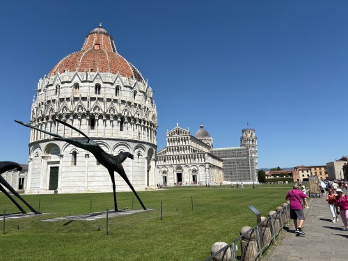 A walk down to the waterfront and we find a group of five girls dressed in pink badge covered overalls. Hens night? Birthday Party? No, turns out they are third year art students, hence pink colour, from the local university manning a checkpoint for first year students undertaking an initiation course. We learn that Law students wear burgundy (dark red), grey for accountants perhaps? Just kidding. The overalls were introduced in the 1960’s.
