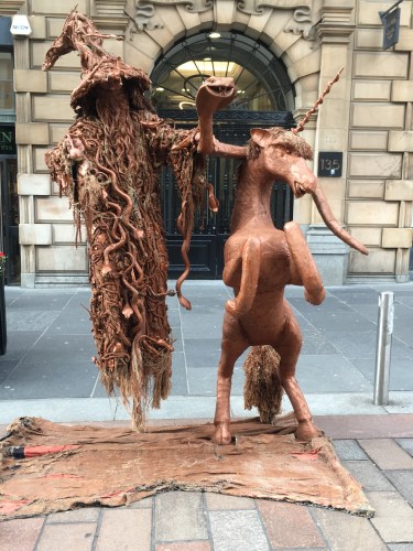 Having come from Edinburgh where a number of the older buildings are still covered in grime from previous centuries, I am taken by the high number of ‘clean’ buildings revealing the greys, reds and whites of the original stone. I learn that the cleaning process was undertaken by spraying a latex solution on the building’s surface which, when pealed back 24 hours later, removed the black grit built up during the coal based industrial period. This was first trialed on the Kelvingrove building which is now the Kelvingrove Art Gallery and Museum which is home to a painting that Anne has loved for many years but had no idea of its home, neither did I.