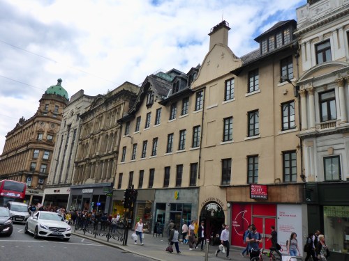 We walk out through the station, which is a construction site, and into a city that surprises me with its magnificent Victorian architecture. I am struck by the number of buildings that have survived from the Victorian/Edwardian eras that line both sides of the streets including the impressive Buchanan St which has been turned into a pedestrian mall lined with shops. Each building front has such detail: sculptures, columns, towers. The Industrial Revolution funded the work and architects Charles Mackintosh and Alexander Thomson were influential in shaping what we see today. We wander through the city sensing a vitality and energy from those around us. On our walk to our hotel we learn that it does have a hill and step streets in places!