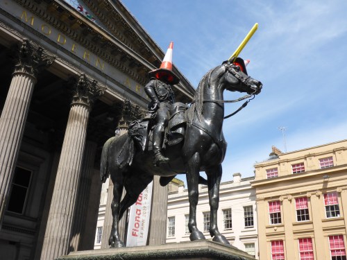 Glaswegian sense of humour: The coned Duke of Wellington statue outside GoMA, Glasgow