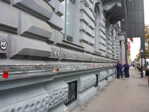 The tiny portraits of those who died here adorn the wall of the building now housing the “House of Terror” museum which was used by both the Gestapo during WW2 and the the Soviet backed security authority which was known as the AVH and was feared across Budapest. Neither of us have a desire to enter, but are moved by a woman who places a candle above one of the portraits and then stands for a few moments in remembrance. Although it is now history, these people died in my lifetime.