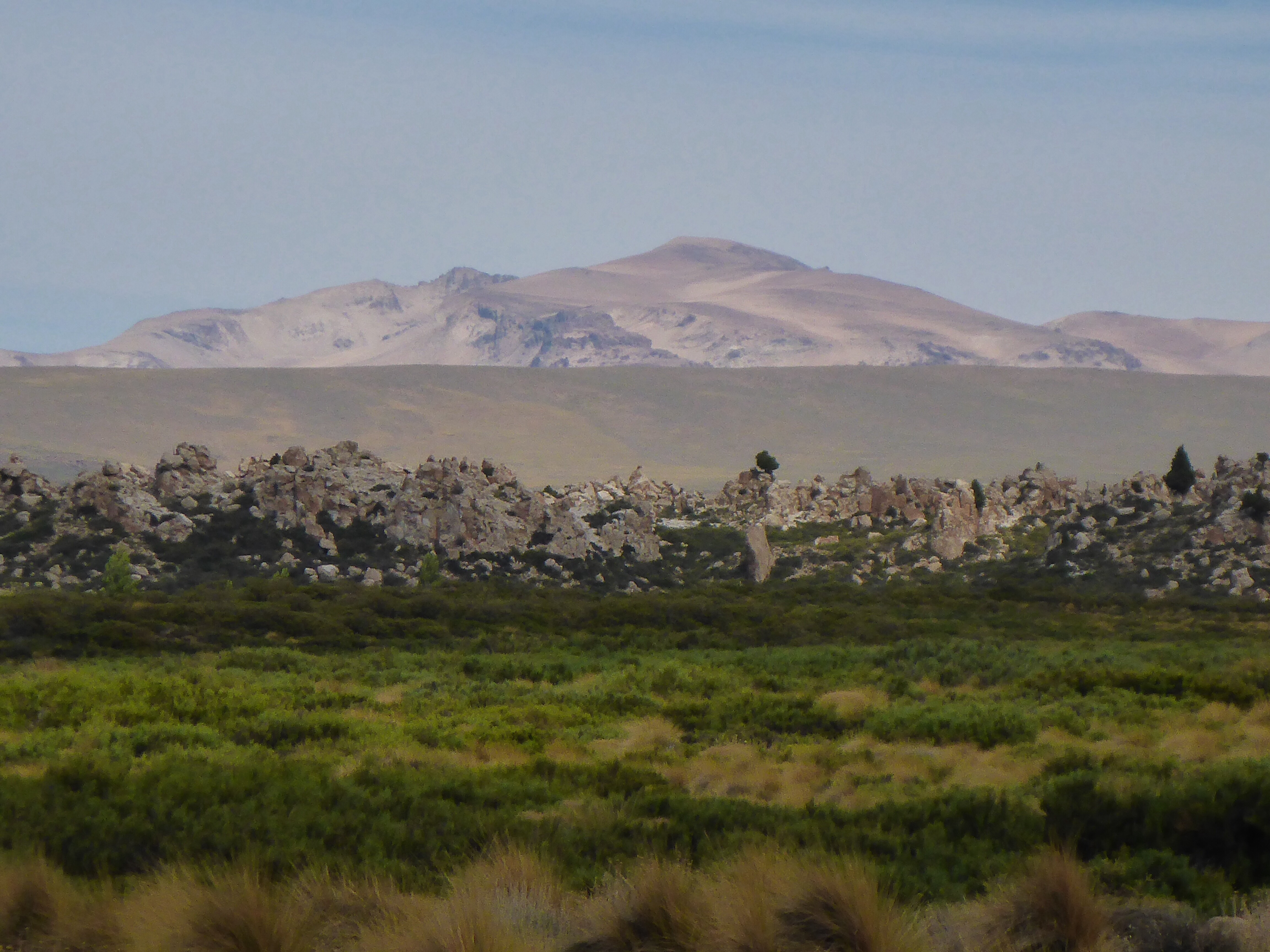 Heading towards Copahue, the rock formations are amazing – this is not a rock wall in the foreground but a long crest