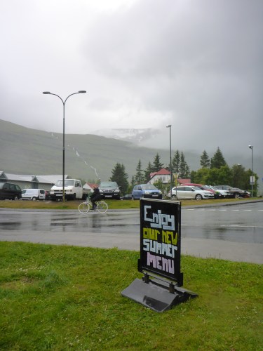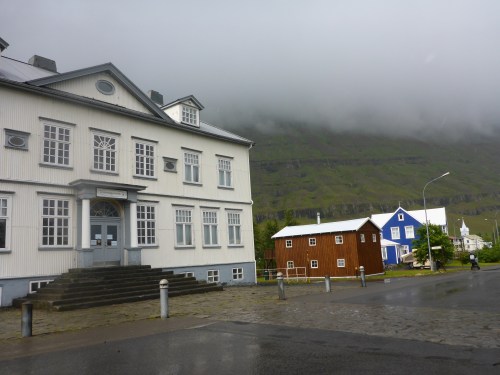 Just as efficiently as we boarded, they have us off into a cold and wet Seyðisfjordur, the port in Eastern Iceland where we will start and finish our circumnavigation of Iceland. The first thing I notice is the trees, something we missed in the Faroes, which had virtually no trees, the second is snow a few hundred meters up the steep grassy hillsides, that explains the cold, snow near sea level in summer, whatever next… Now I know why all the UK motorcyclists head south from the Eurostar, they can get this kind of weather in the UK in winter.