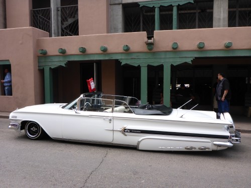 We spend the time in town seeing a small show of Mexican lowrider cars, a special category of cars that started in Los Angles in the late 1940’s and early 50’s. From sandbags first loaded in the boot/trunk to today’s sophisticated electro/hydraulic systems, the aim, by modifying the suspension and chassis, is to be “low & slow”. The cars were also decorated, paint and trim, to reflect the Mexican culture where the drivers came from in contrast to the then “Anglo” culture prevalent in the USA at the time.